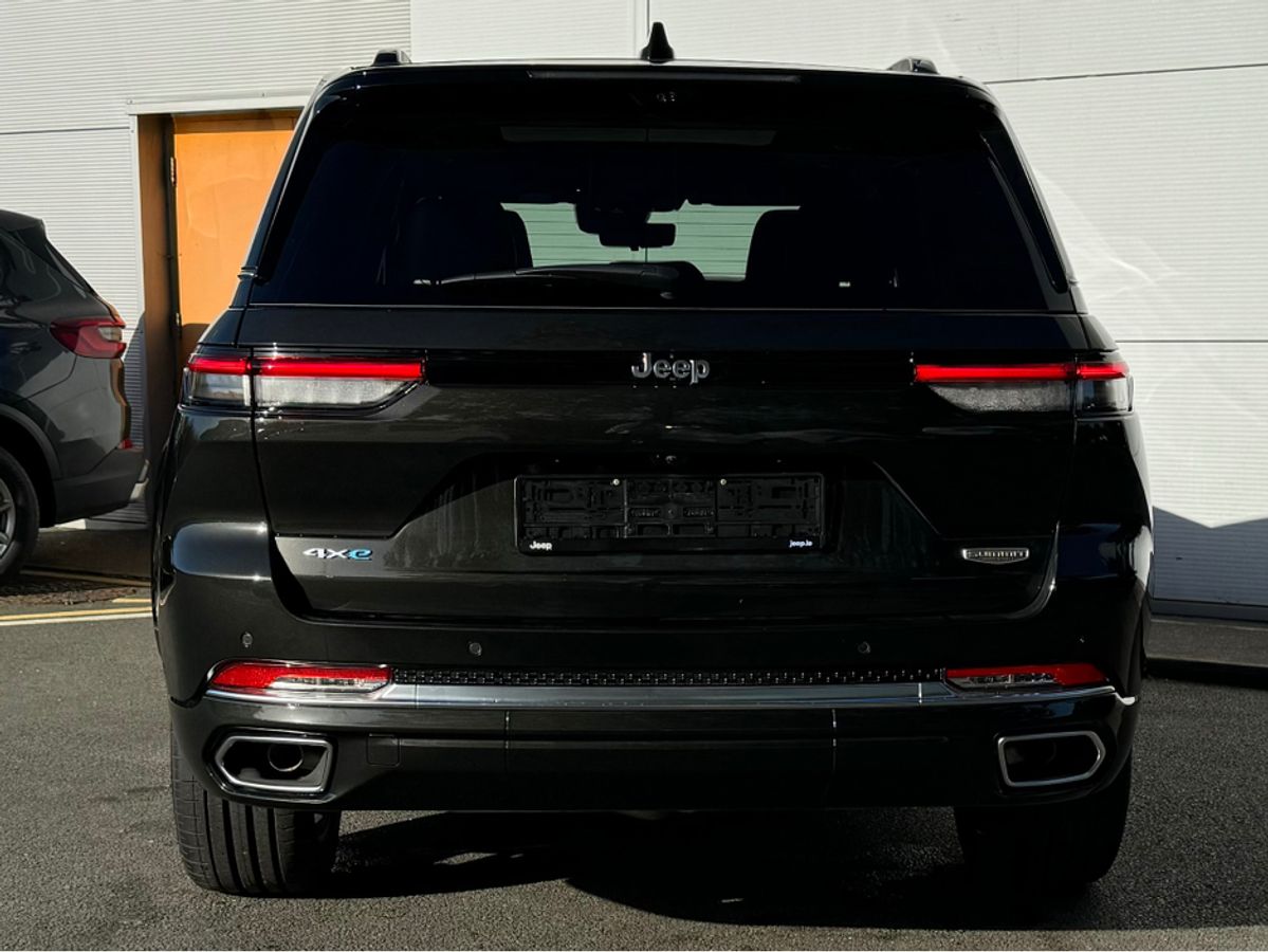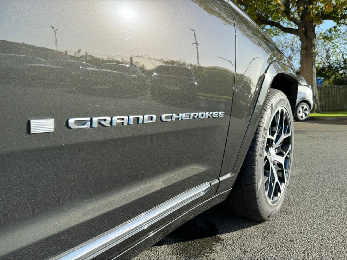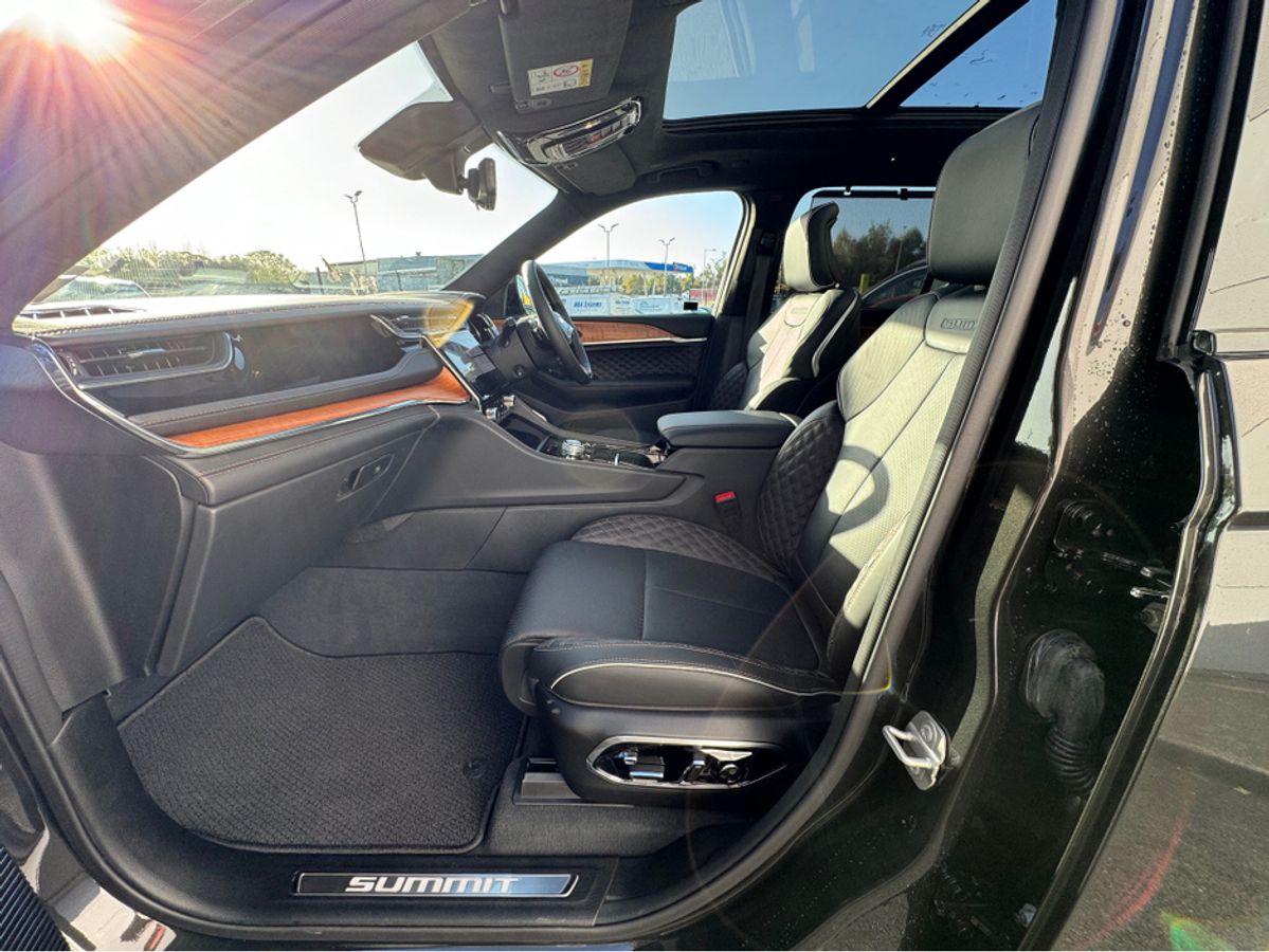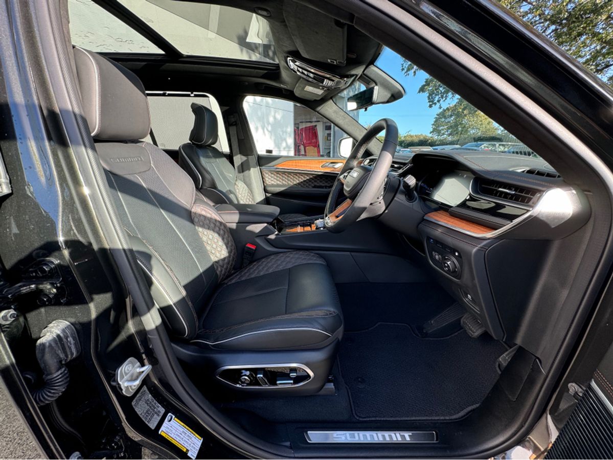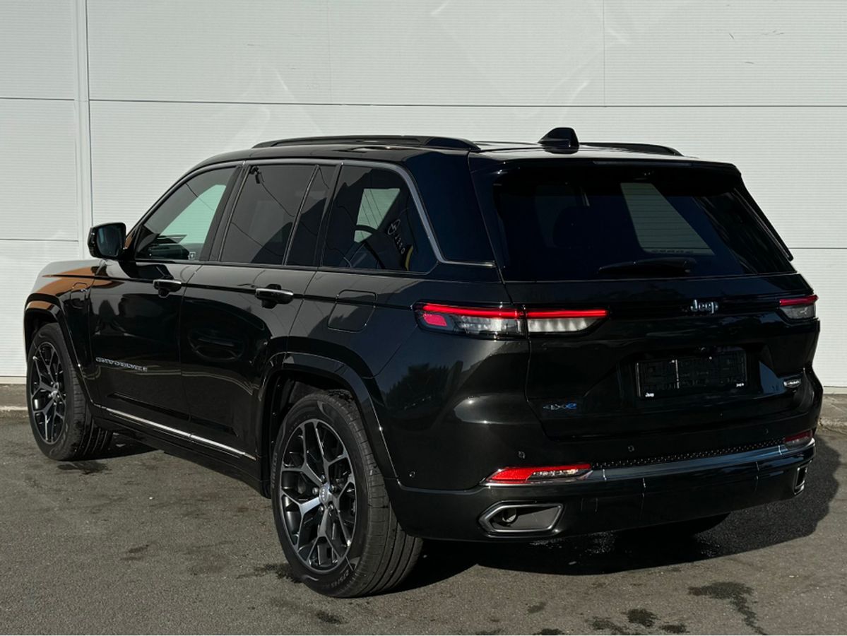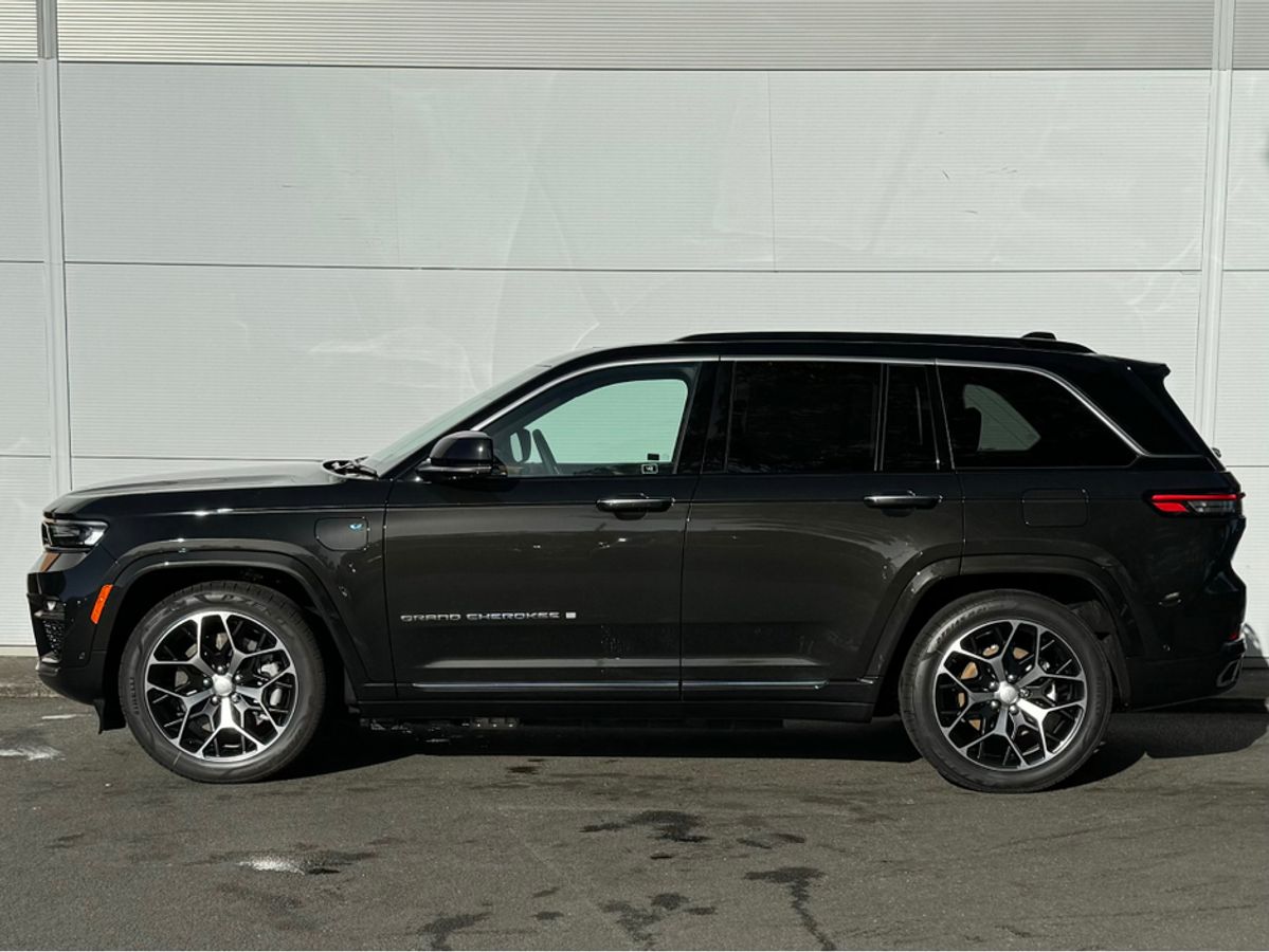The All-New Jeep Grand Cherokee Summit Plus. Powered by a 2.0 Turbocharged four-cylinder engine and assisted by two motors, produces 375 horsepower and 470 pound-feet of torque. It features 21" polished alloy wheels, a panoramic roof, a McIntosh sound system with 19 speakers including a 10 inch subwoofer, a passenger screen and four zone climate control to name a few.