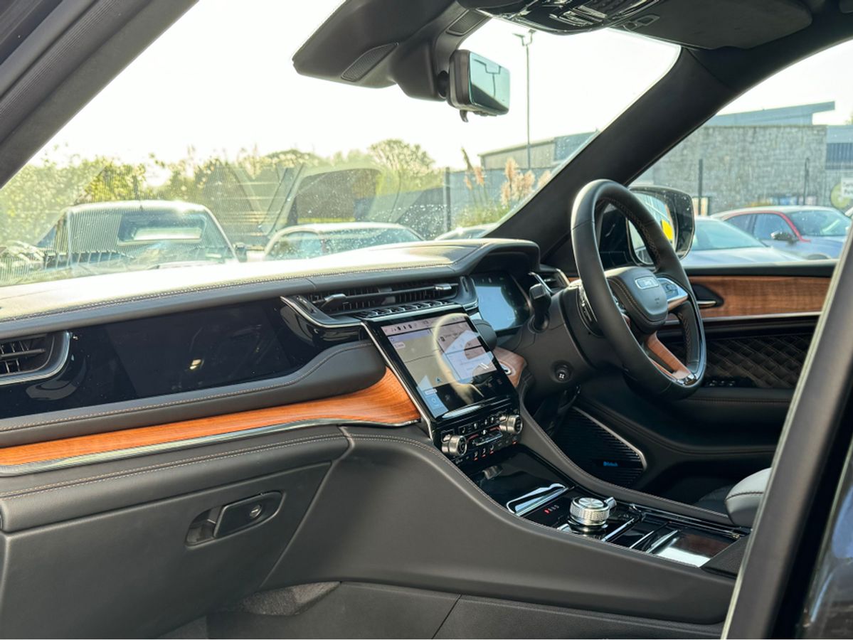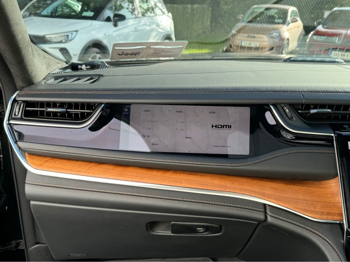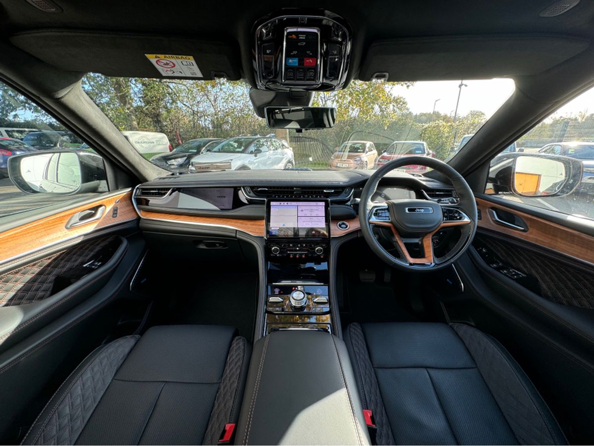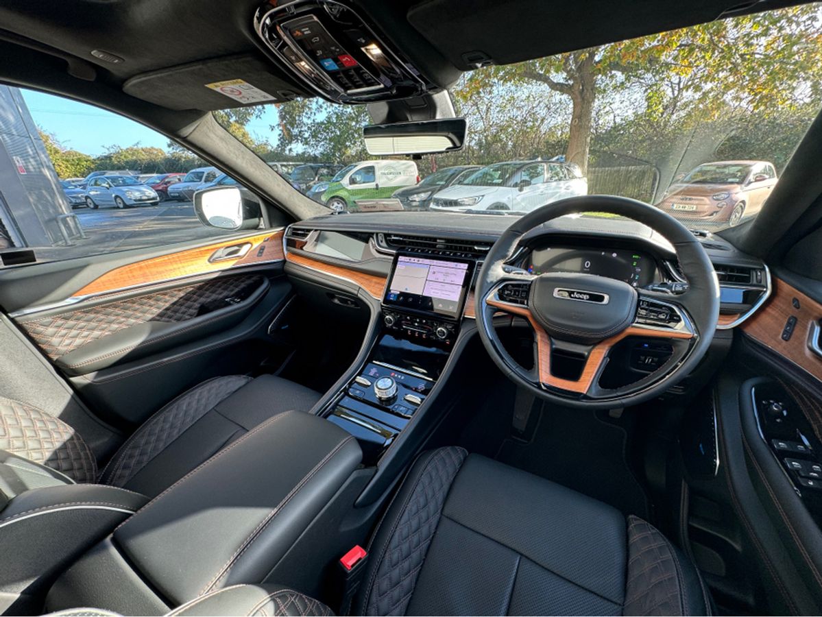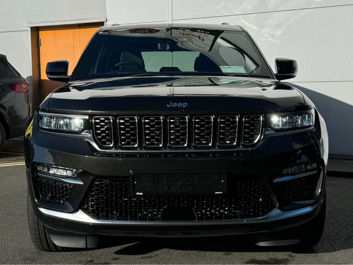 The All-New Jeep Grand Cherokee Summit Plus. Powered by a 2.0 Turbocharged four-cylinder engine and assisted by two motors, produces 375 horsepower and 470 pound-feet of torque. It features 21" polished alloy wheels, a panoramic roof, a McIntosh sound system with 19 speakers including a 10 inch subwoofer, a passenger screen and four zone climate control to name a few.