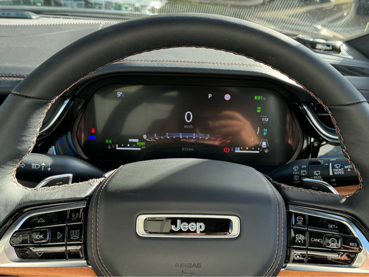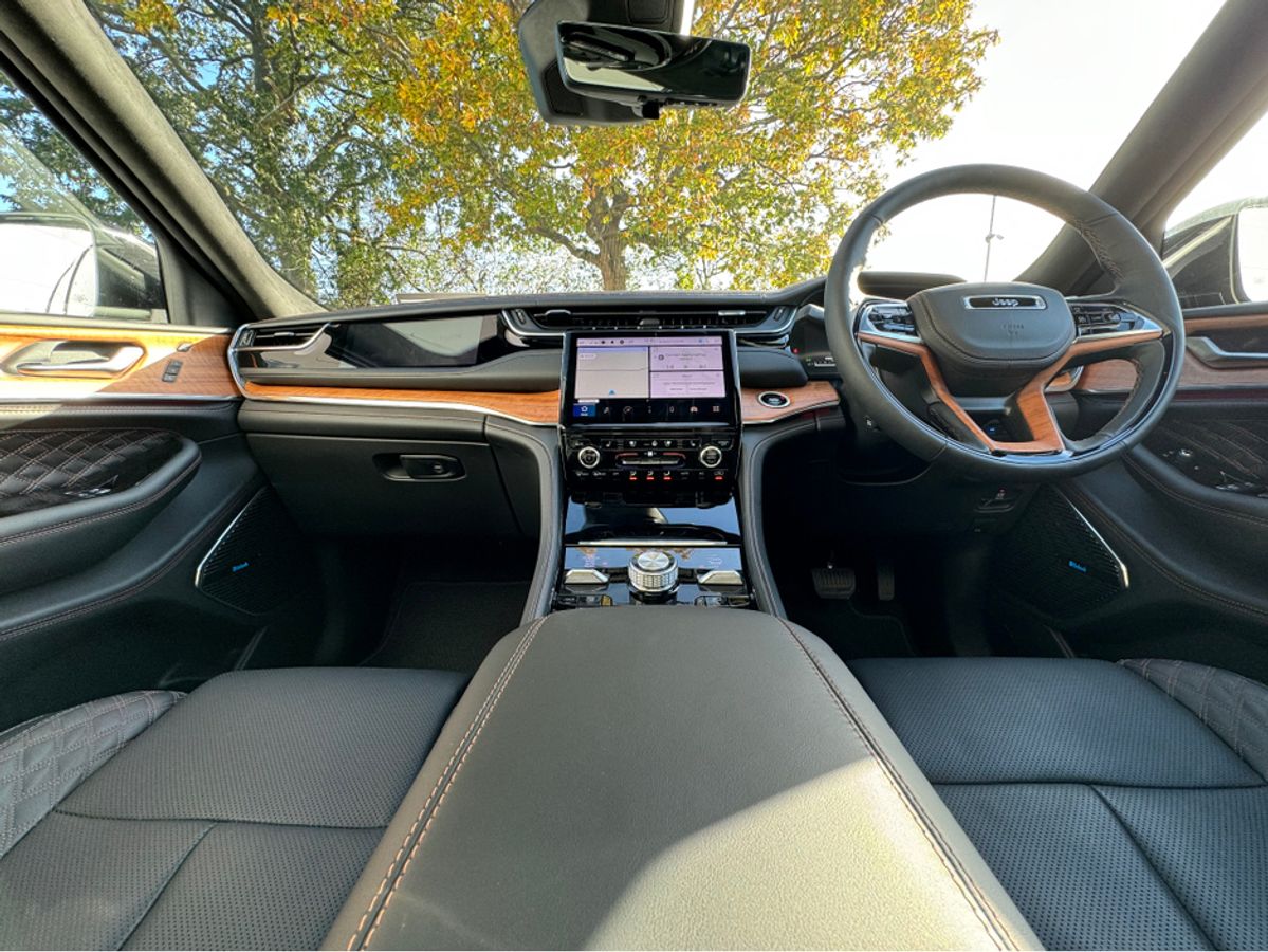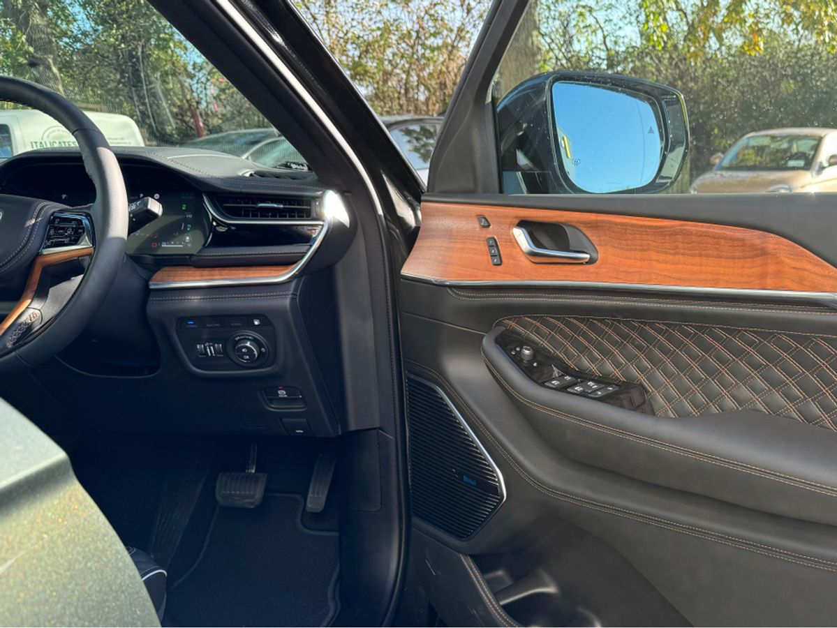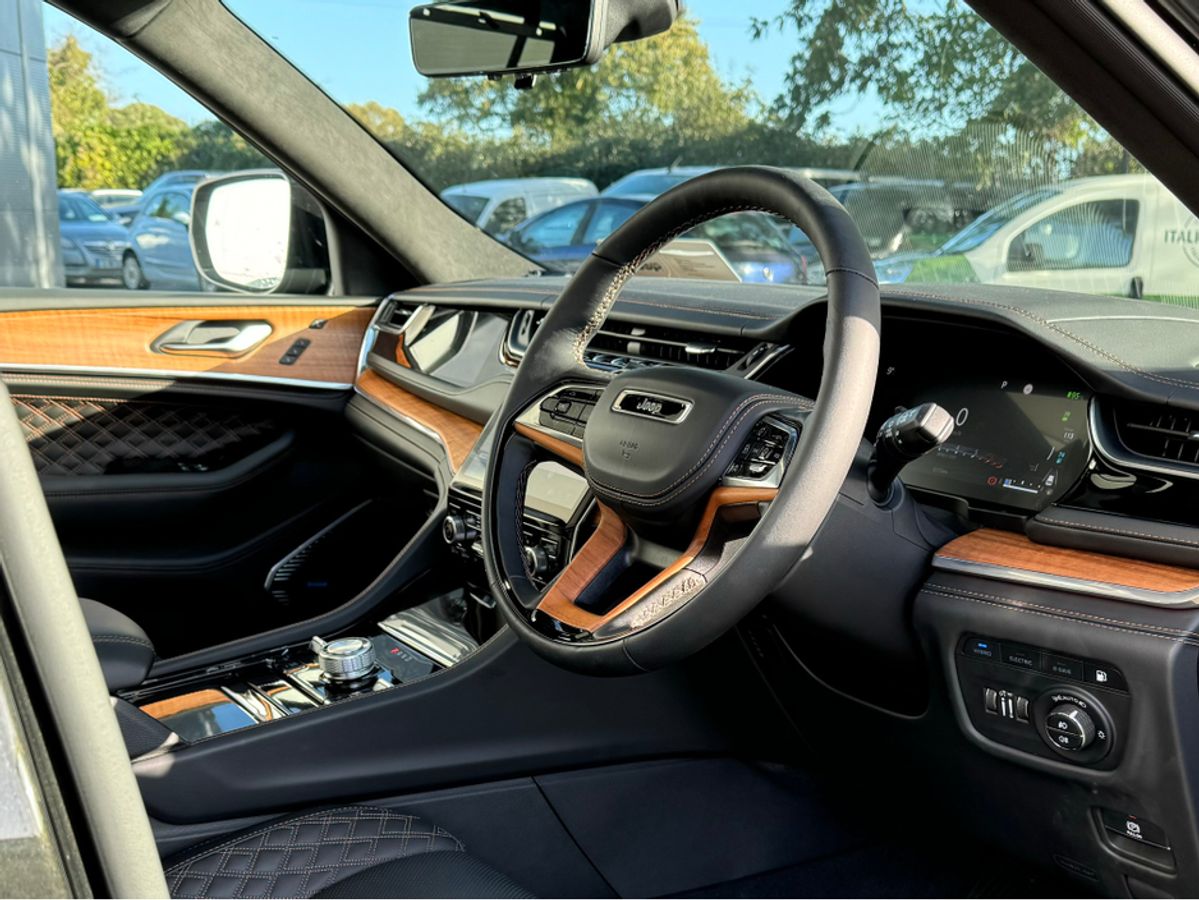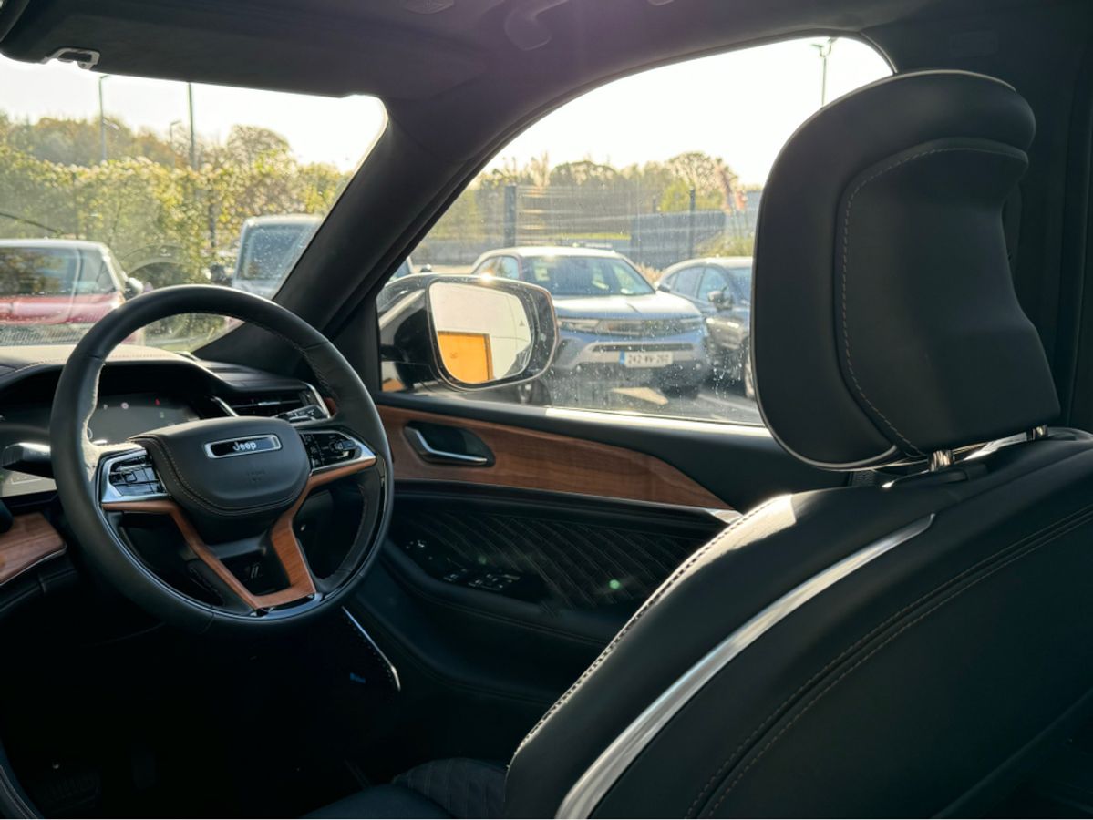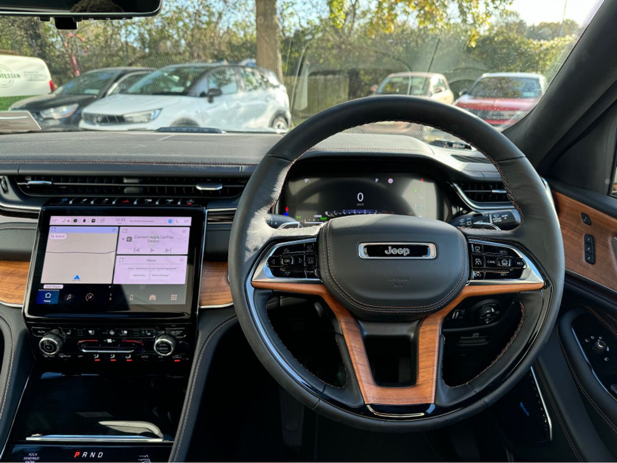 The All-New Jeep Grand Cherokee Summit Plus. Powered by a 2.0 Turbocharged four-cylinder engine and assisted by two motors, produces 375 horsepower and 470 pound-feet of torque. It features 21" polished alloy wheels, a panoramic roof, a McIntosh sound system with 19 speakers including a 10 inch subwoofer, a passenger screen and four zone climate control to name a few.