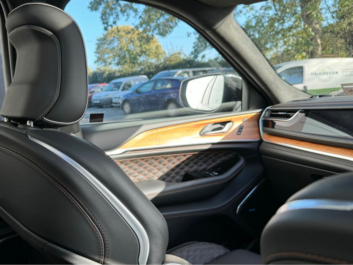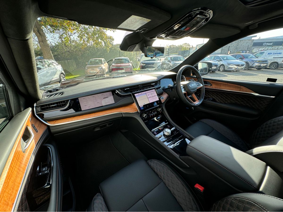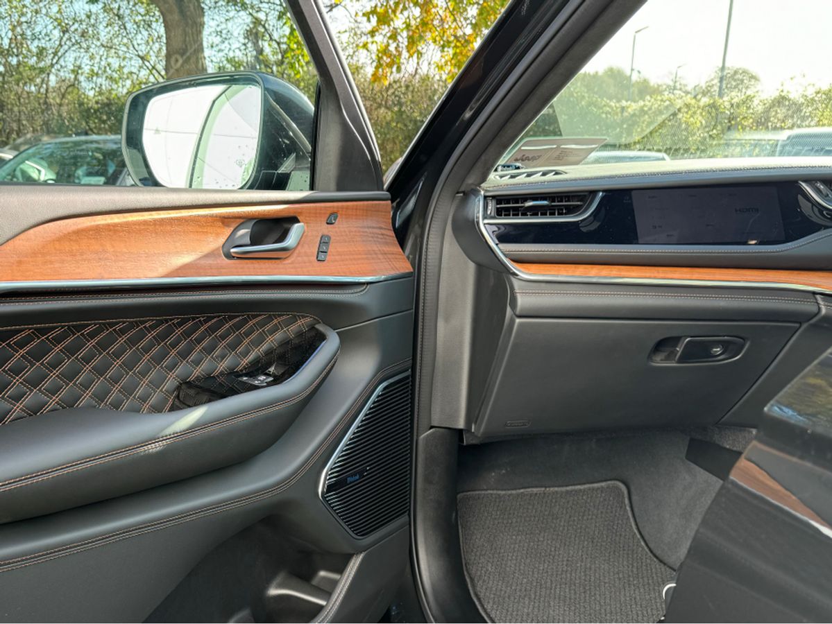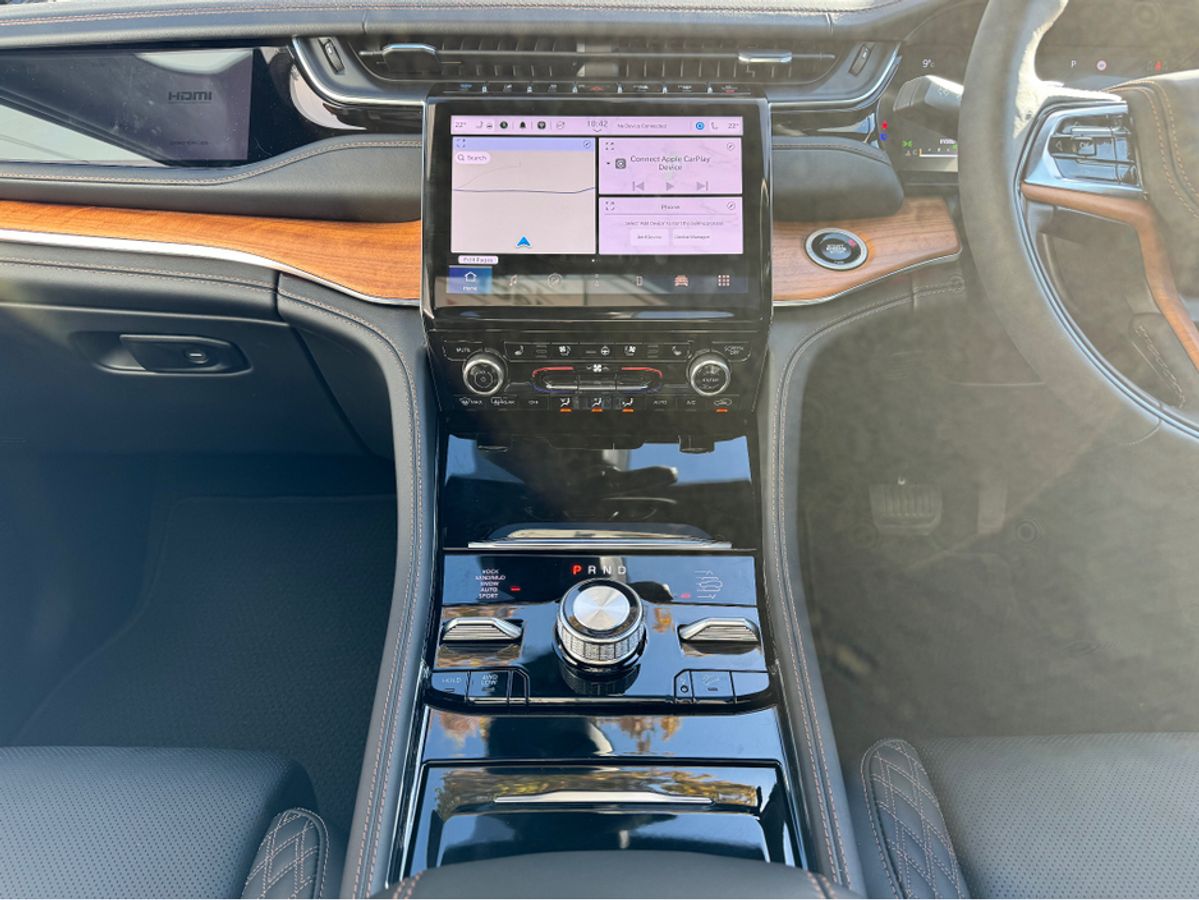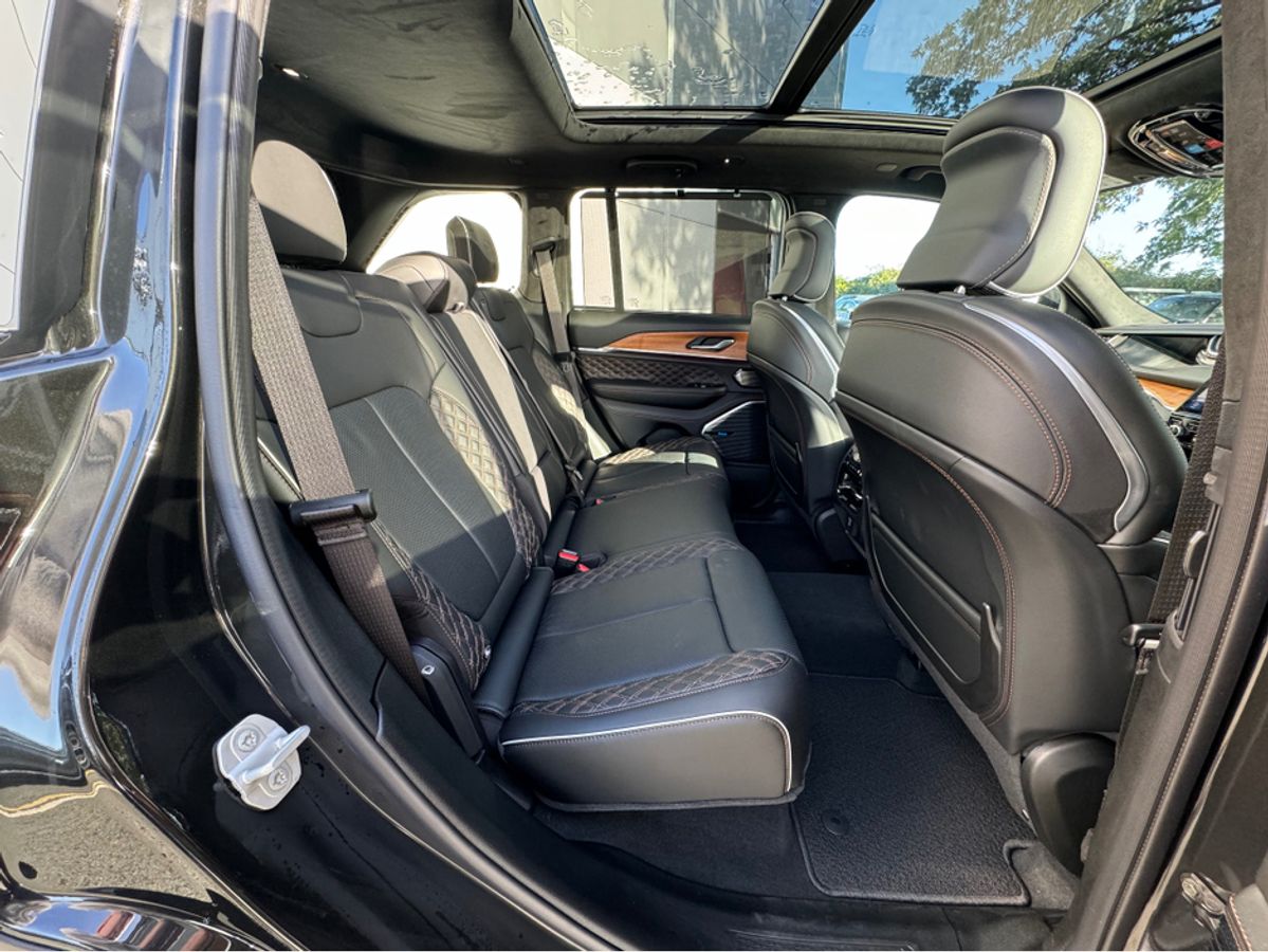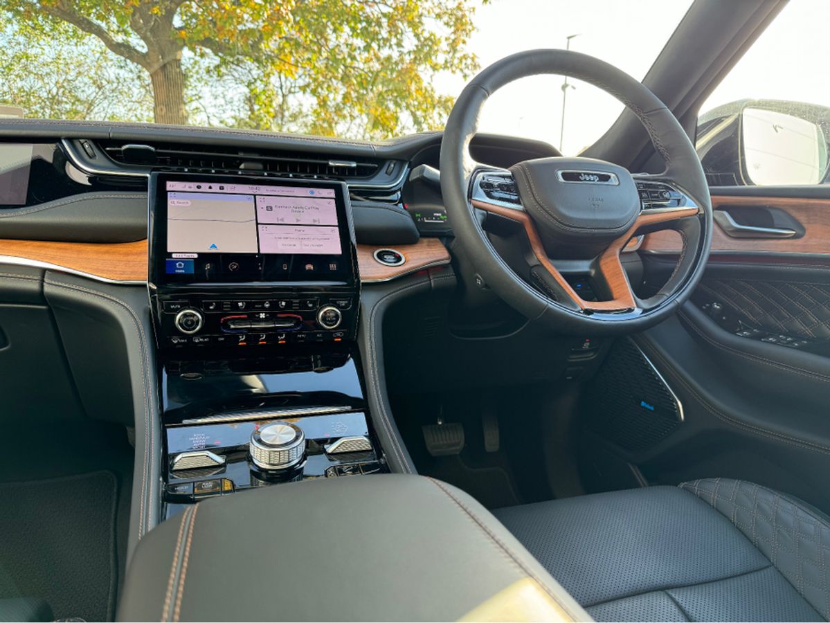 The All-New Jeep Grand Cherokee Summit Plus. Powered by a 2.0 Turbocharged four-cylinder engine and assisted by two motors, produces 375 horsepower and 470 pound-feet of torque. It features 21" polished alloy wheels, a panoramic roof, a McIntosh sound system with 19 speakers including a 10 inch subwoofer, a passenger screen and four zone climate control to name a few.