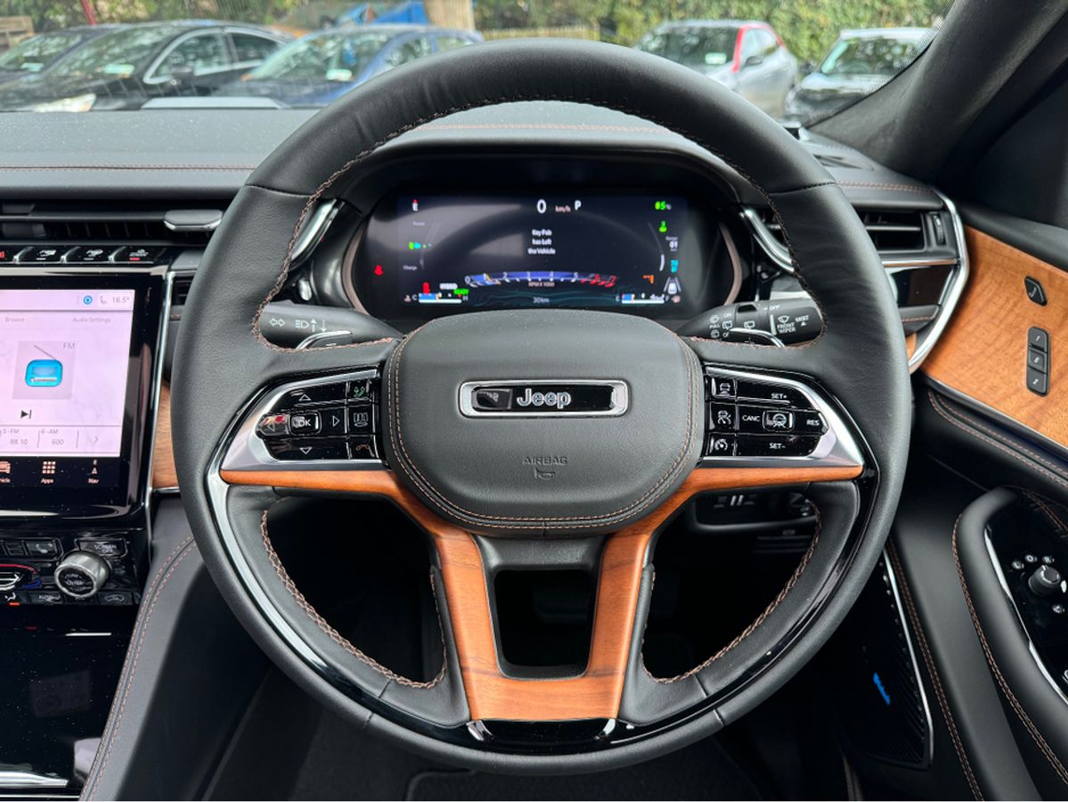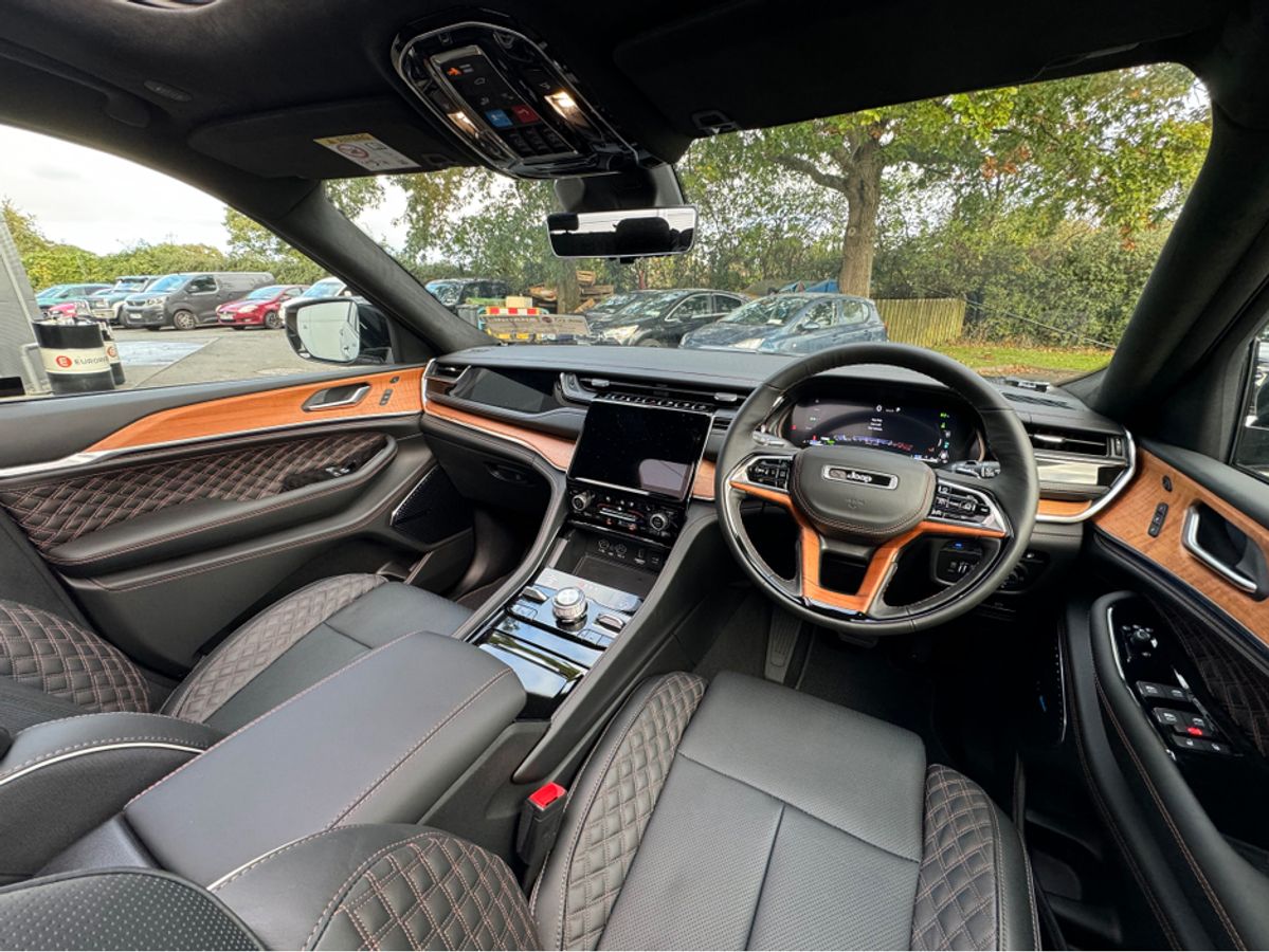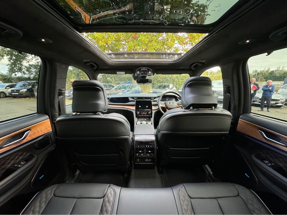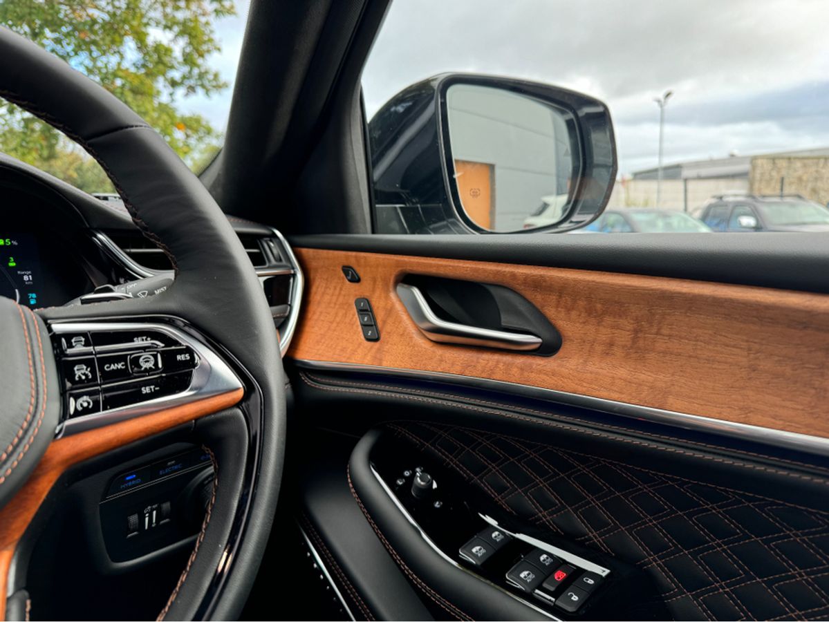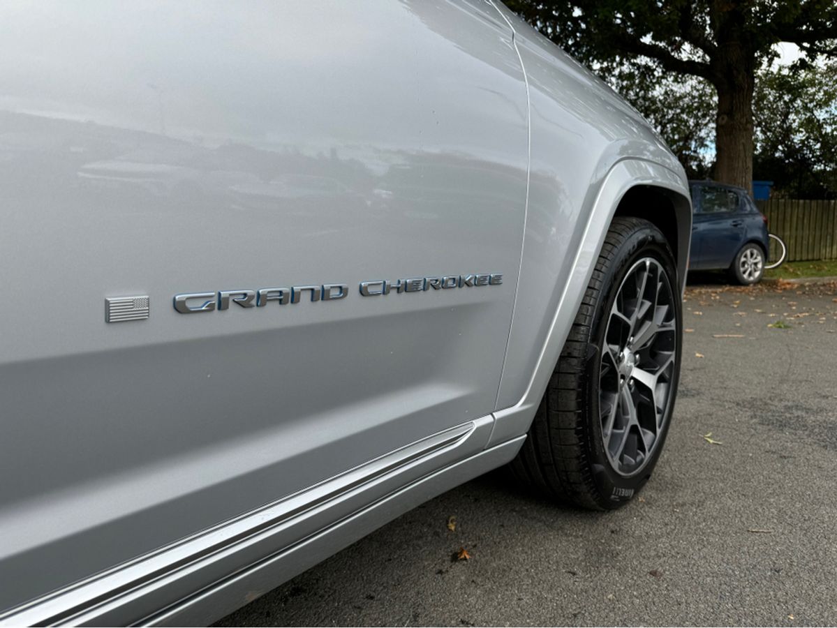 The All-New Jeep Grand Cherokee Summit Plus. Powered by a 2.0 Turbocharged four-cylinder engine and assisted by two motors, produces 375 horsepower and 470 pound-feet of torque. It features 21" polished alloy wheels, a panoramic roof, a McIntosh sound system with 19 speakers including a 10 inch subwoofer, a passenger screen and four zone climate control to name a few.