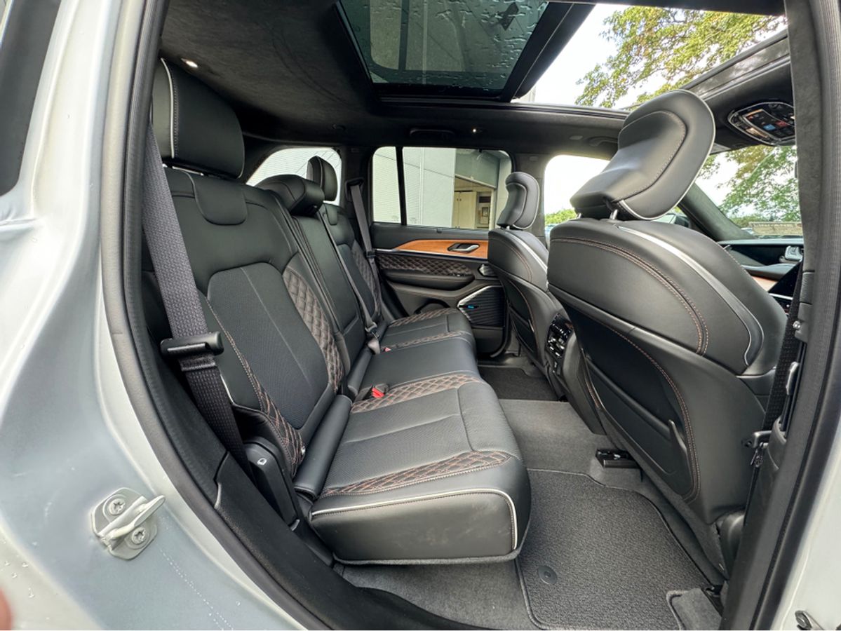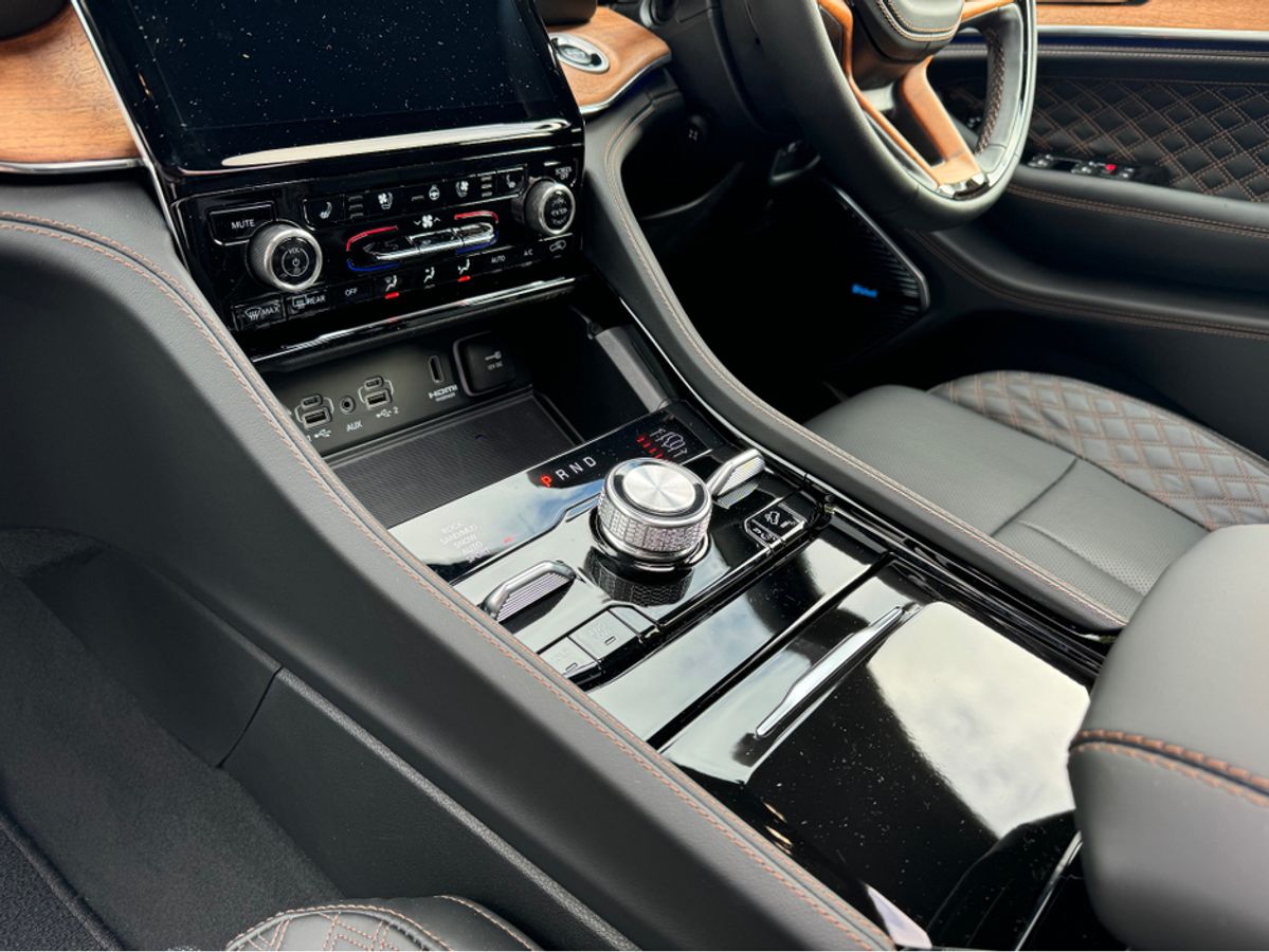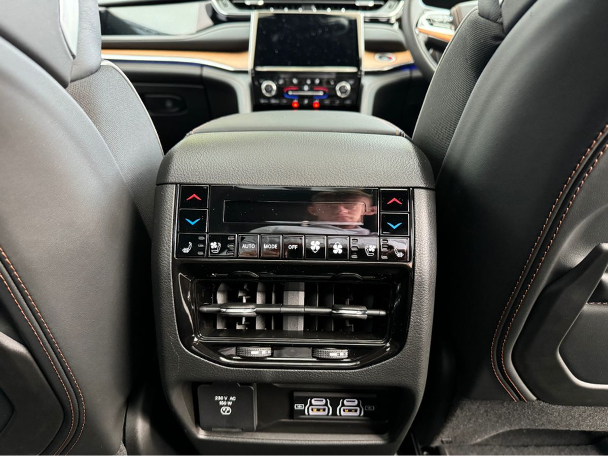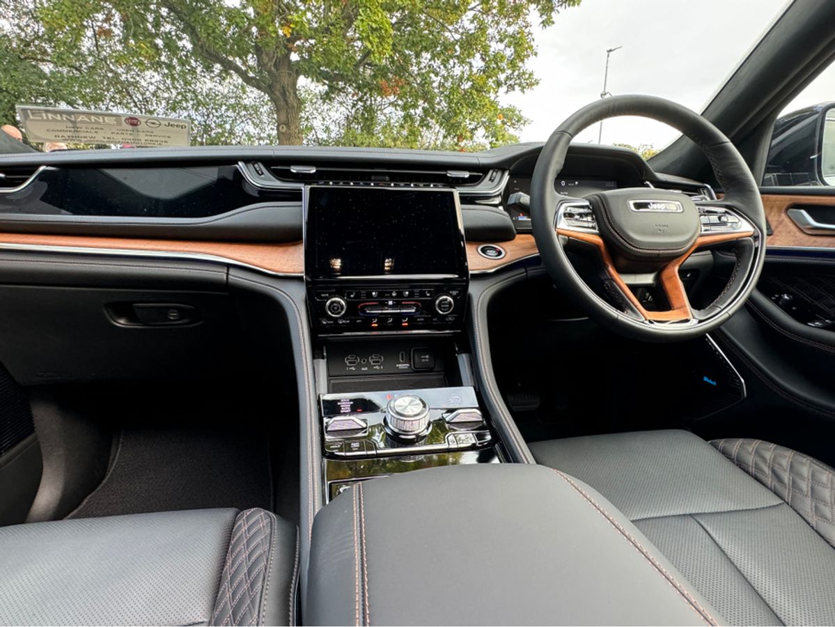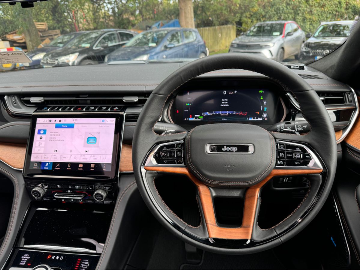 The All-New Jeep Grand Cherokee Summit Plus. Powered by a 2.0 Turbocharged four-cylinder engine and assisted by two motors, produces 375 horsepower and 470 pound-feet of torque. It features 21" polished alloy wheels, a panoramic roof, a McIntosh sound system with 19 speakers including a 10 inch subwoofer, a passenger screen and four zone climate control to name a few.