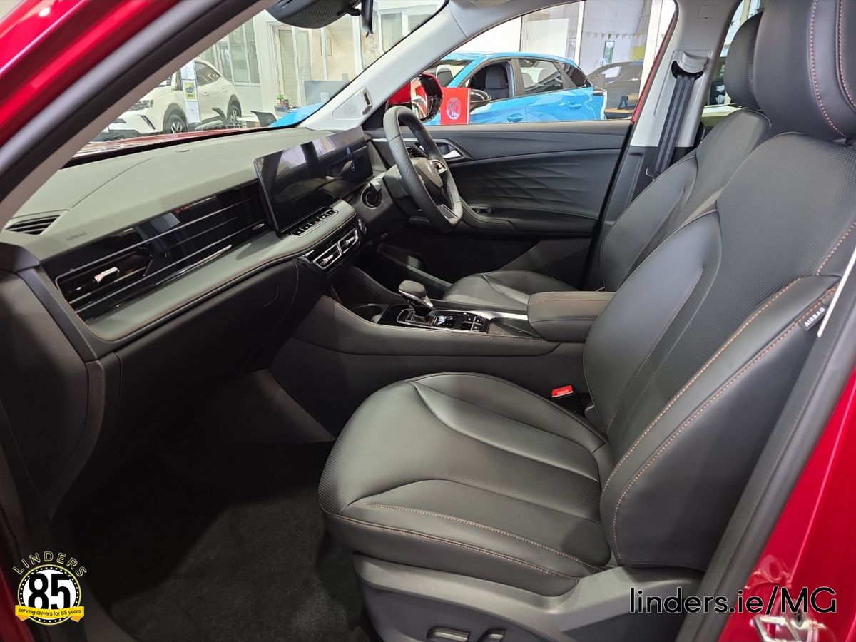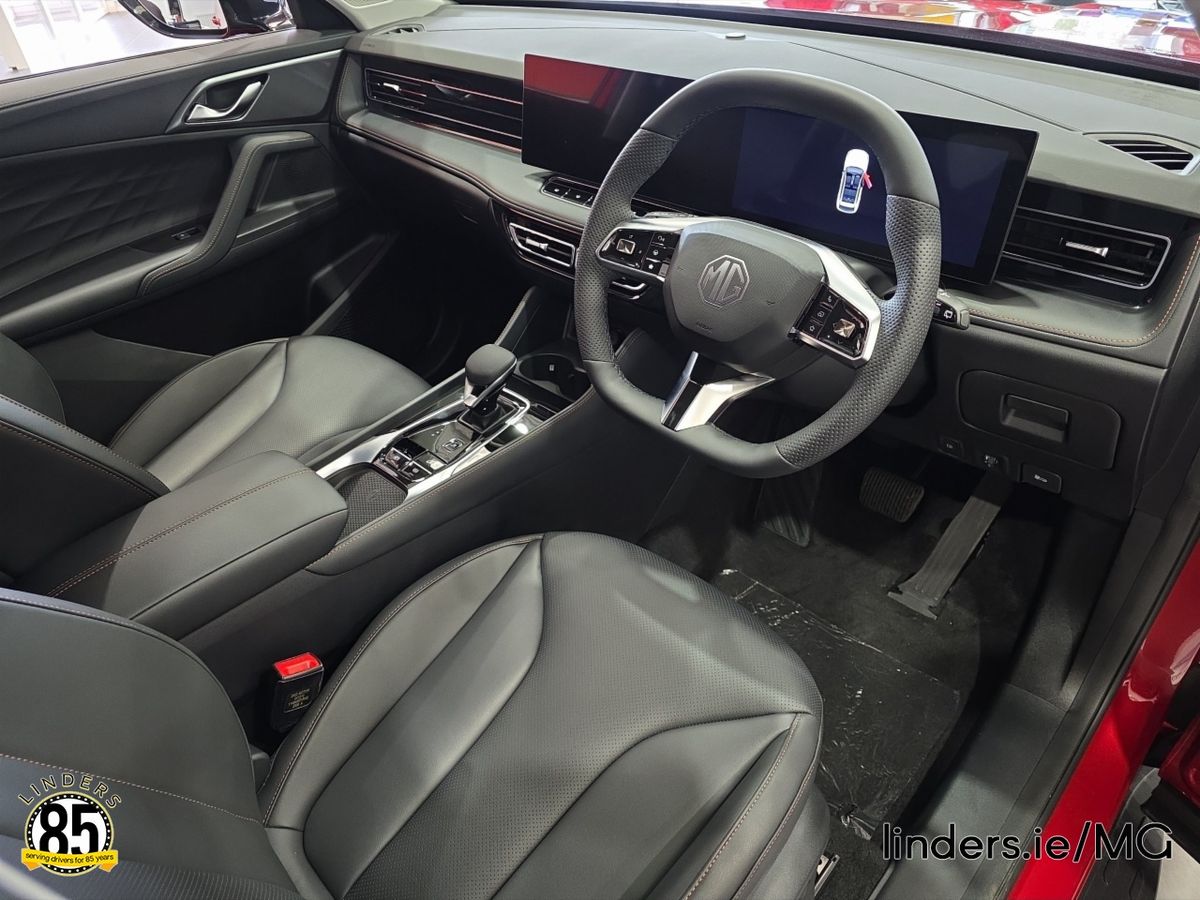 Compared to its predecessor, the new MG HS Plug-in Hybrid is 14mm wider at 1,890mm and 45mm longer at 4,670mm. This updated design, combined with a 45mm increase in the wheelbase to 2,765mm, ensures greater interior space while maintaining a dynamic profile. Boot capacity has increased by 44 litres to 507 litres, ensuring ample space for luggage and everyday essentials. The new MG HS Plug-in Hybrid offers Irish drivers an upgraded interior packed with technology and comfort enhancing features. Two prominent 12.3-inch high-definition displays dominate the cabin. The central display controls infotainment, with live navigation services that include weather updates, live traffic information, access to Amazon Music, and smartphone connectivity via both Android Auto™ and Apple CarPlay®. The Exclusive model comes with a 360° surround view camera and wireless smartphone charging as standard. Throughout the cabin, high-quality materials and premium finishes create a welcoming and luxurious environment. Key touchpoints, including a new three-spoke steering wheel and a modern shuttle-style gear shifter, further enhance the driving experience. The top-spec Exclusive model comes with 19-inch diamond-cut alloy wheels, front fog lights, electrically adjustable and folding heated door mirrors with memory function, an electric 6-way driver’s seat with lumbar adjustment and a memory function, a power tailgate, an 8-speaker audio system, MG iSmart with live services, wireless smartphone charging, and Vehicle-to-Load (V2L) functionality as standard. Safety is also a top priority, with all models equipped with the enhanced MG Pilot suite of driver assistance systems, including Active Emergency Braking with Pedestrian and Bicycle Detection, Lane Keep Assist, Lane Departure Warning System, Blind Spot Detection with Lane Change Assist, Driver Attention Alert, Forward Collision Warning, Rear Cross Traffic Alert, Door Open Warning, Adaptive Cruise Control, Traffic Jam Assist, and Intelligent Speed Limit Assist.