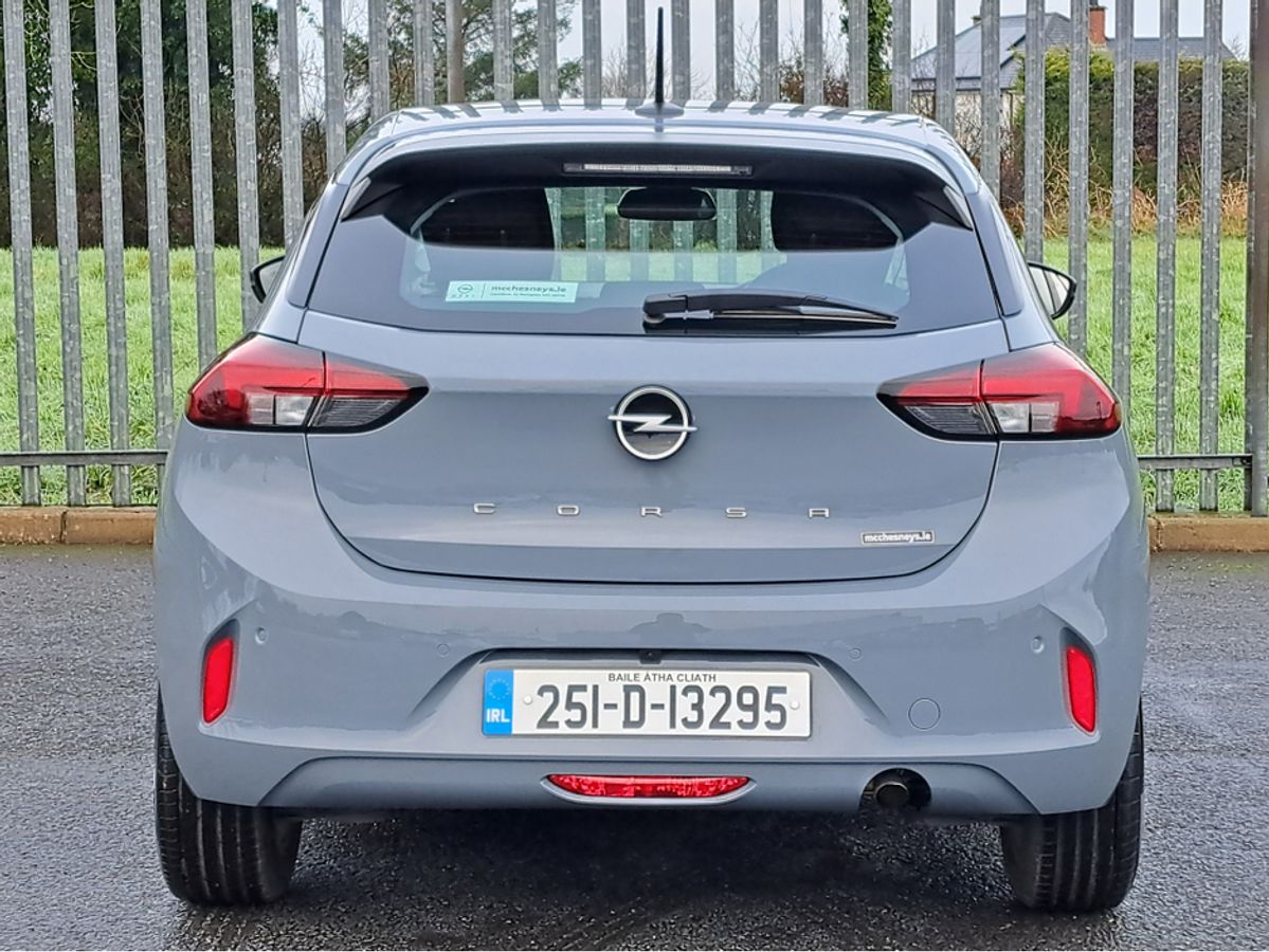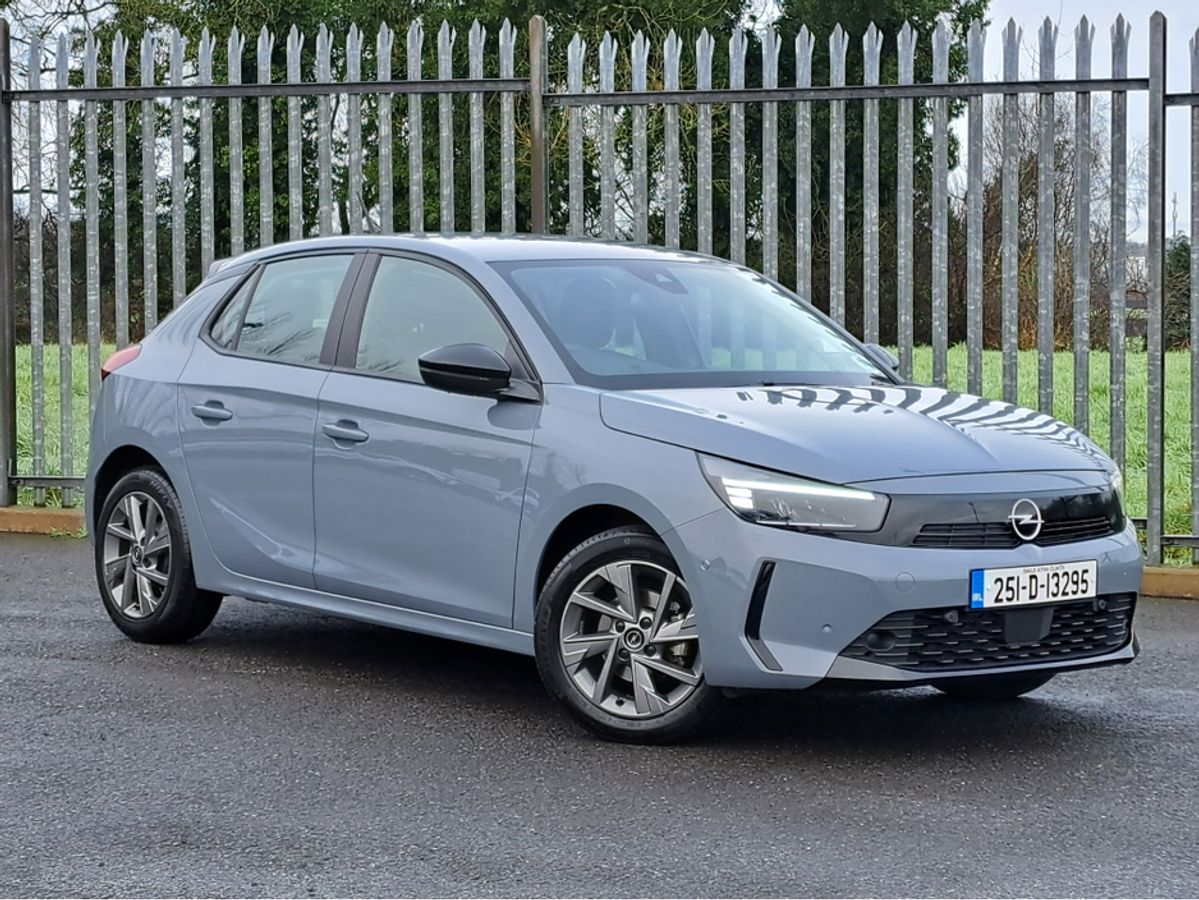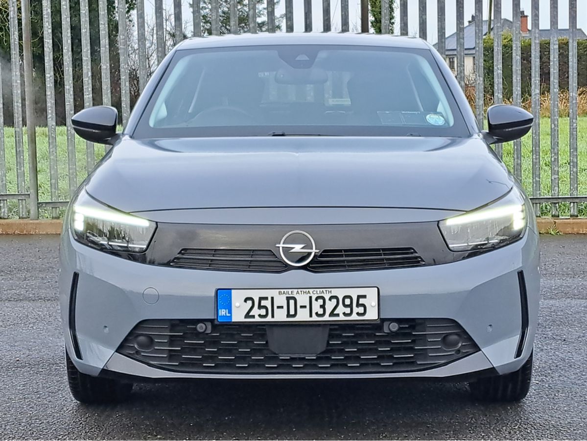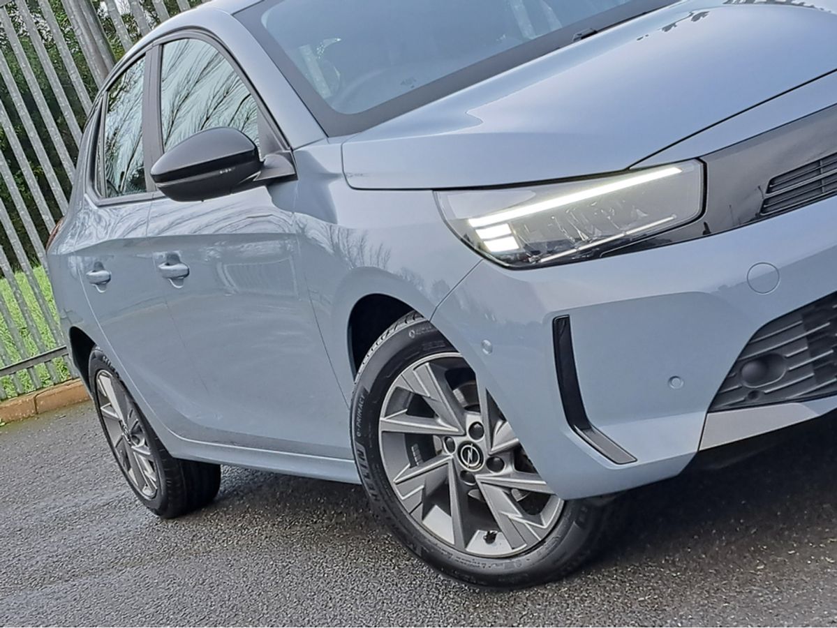 This stylish Opel Corsa Elegance is finished off in GSE grey paint and comes with 7" Digital cluster display, LED daytime running lights/Head lights, 16-inch grey alloy wheels, Rain-sensitive windscreen wipers, Automatic headlight control, Front and rear parking sensors, Blind spot alert, Fold away mirrors, 10" colour touchscreen with MirrorLink, Apple Car Play and Android Auto, Panoramic rear-view camera.