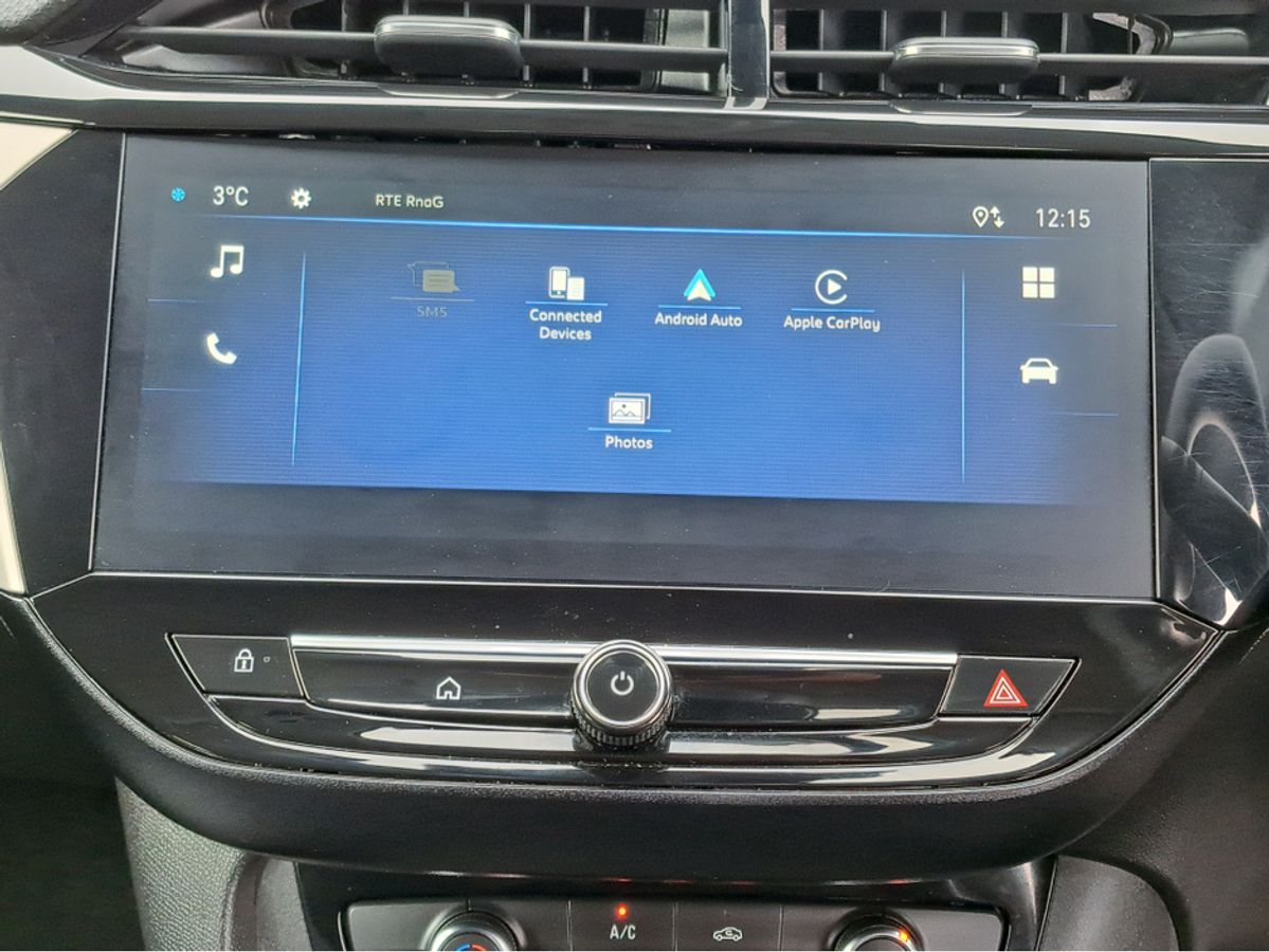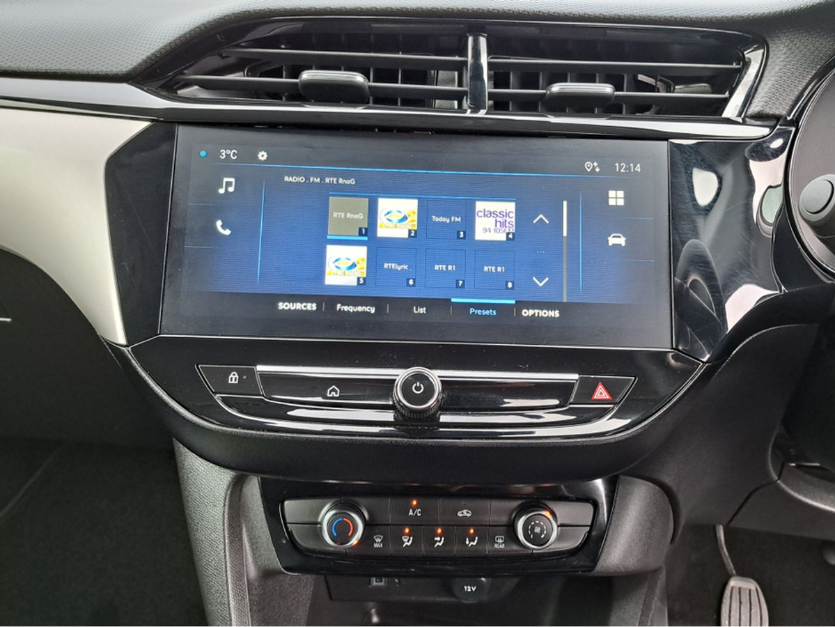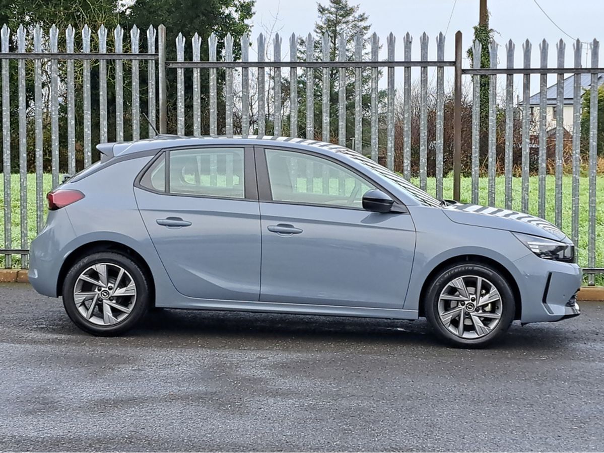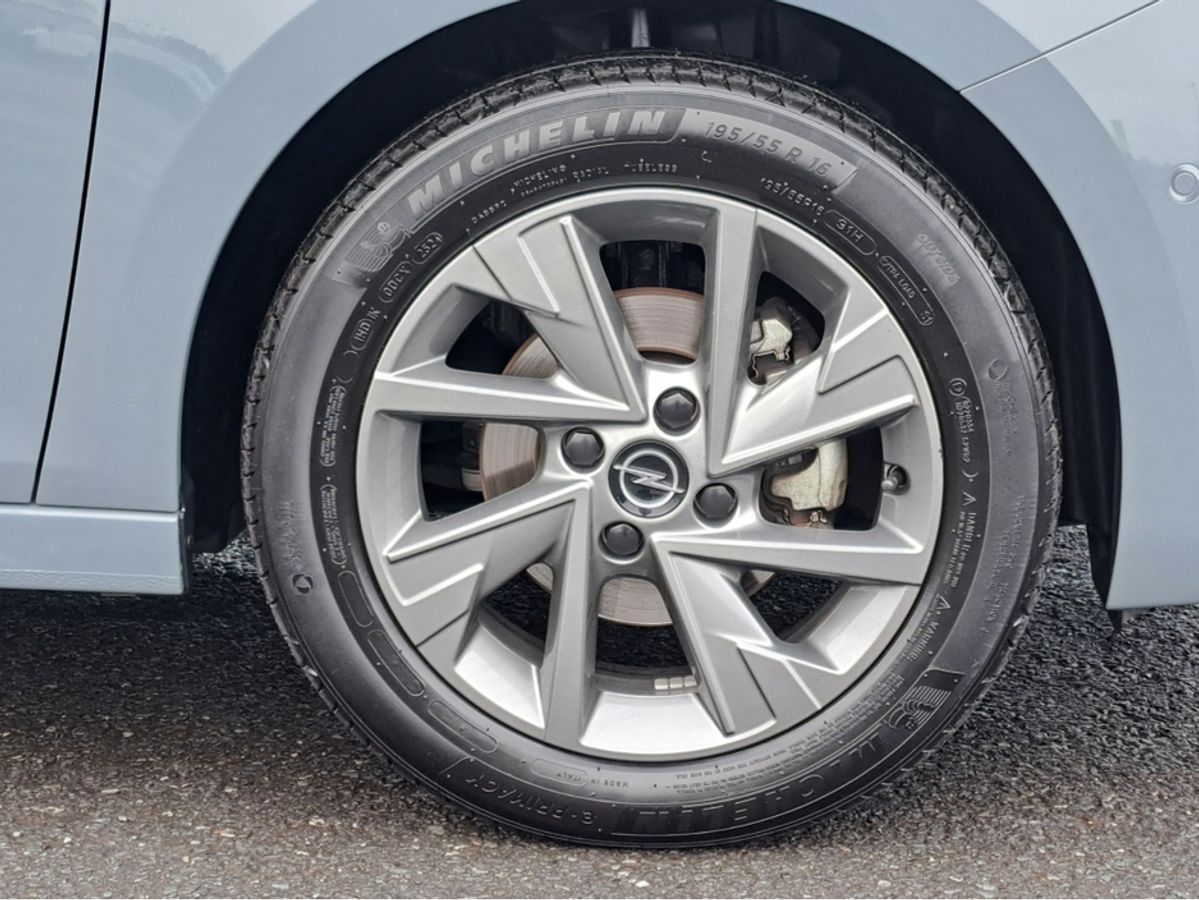 This stylish Opel Corsa Elegance is finished off in GSE grey paint and comes with 7" Digital cluster display, LED daytime running lights/Head lights, 16-inch grey alloy wheels, Rain-sensitive windscreen wipers, Automatic headlight control, Front and rear parking sensors, Blind spot alert, Fold away mirrors, 10" colour touchscreen with MirrorLink, Apple Car Play and Android Auto, Panoramic rear-view camera.