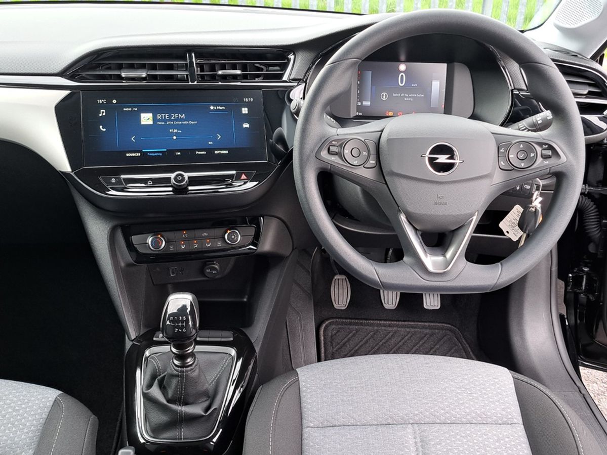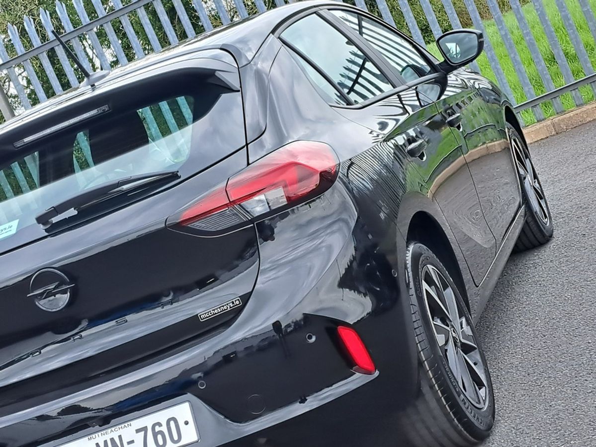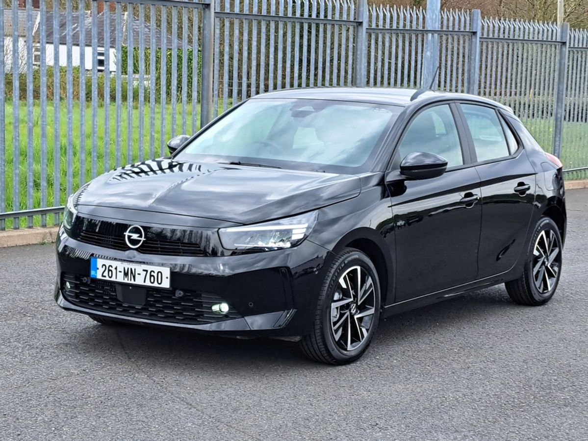 This stylish Opel Corsa Elegance is finished off in diamond black metallic and comes with 7" Digital cluster display, LED daytime running lights/Head lights, LED fog lights, 16-inch alloy wheels, Rain-sensitive windscreen wipers, Automatic headlight control, Front and rear parking sensors, Blind spot alert, Fold away mirrors, 10" colour touchscreen with MirrorLink, Apple Car Play and Android Auto, Panoramic rear-view camera.