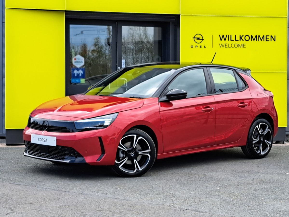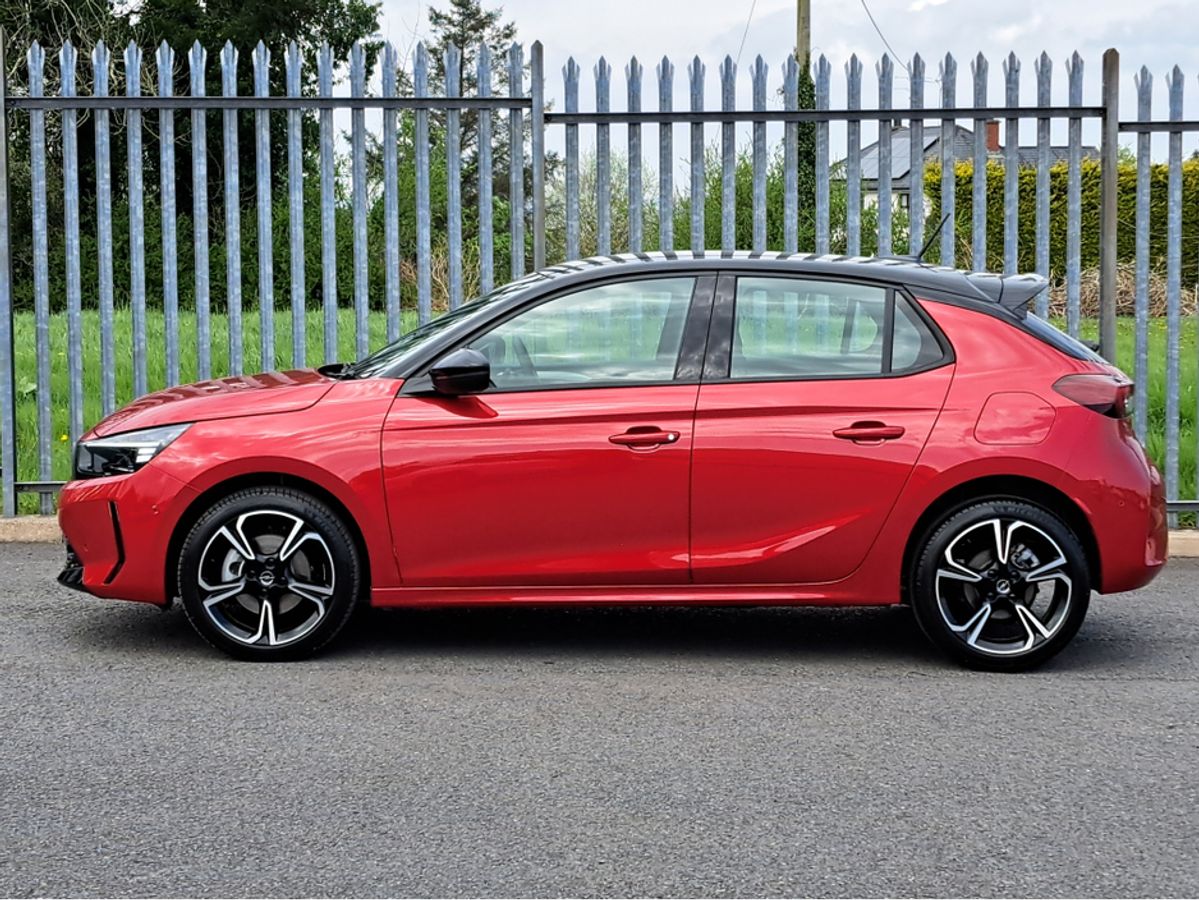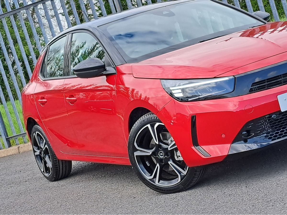 We are pleased to offer for sale this impressive Opel Corsa GS 1.2 Turbo MHEV 100bhp automatic with mild hybrid technology. This significantly reduces fuel consumption and CO2 emissions. No plug in for recharging!!! This car is finished off in this very eye catching combination hot red metallic colour with black roof and side mirrors. GS model with sport interior, Dark headlining, Heated seats and steering wheel, 7'' digital driver information cluster, 10'' colour touchscreen with MirrorLink/ Apple Car Play/ Android Auto, Reversing camera, LED headlamps, 18" alloy wheels, Rain-sensitive windscreen wipers, Automatic headlight control, Front and rear parking distance sensors, Fold away mirrors, Intelligent front camera safety system with speed sign recognition, Cruise control with speed limiter, Lane departure warning with lane assist, USB audio connection and much more.