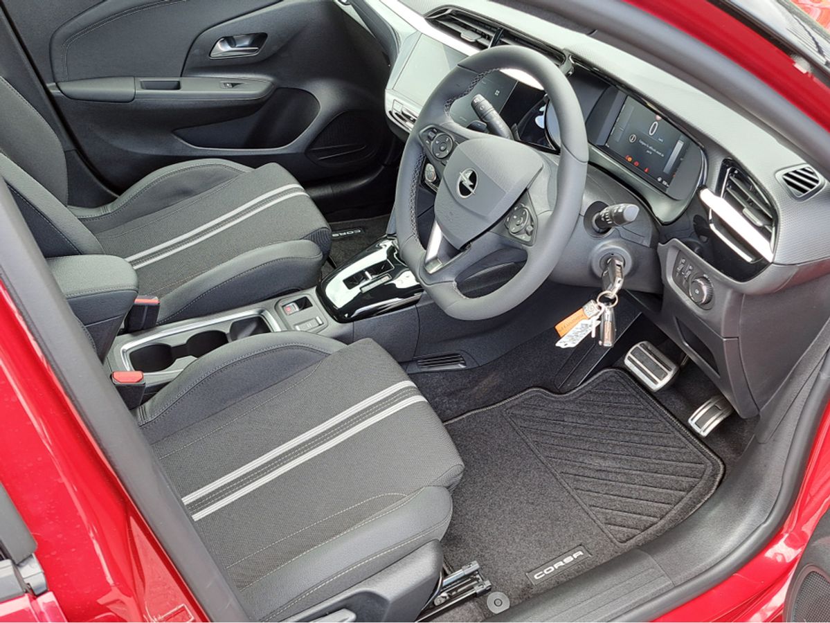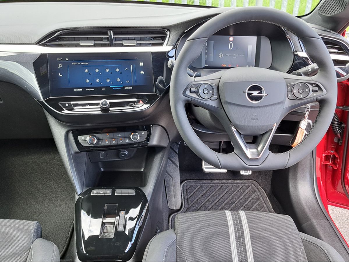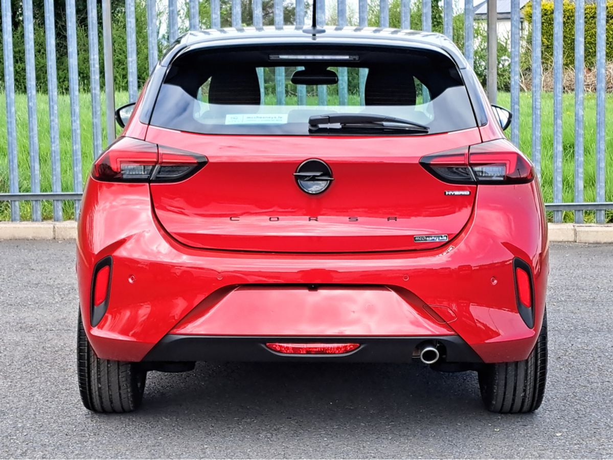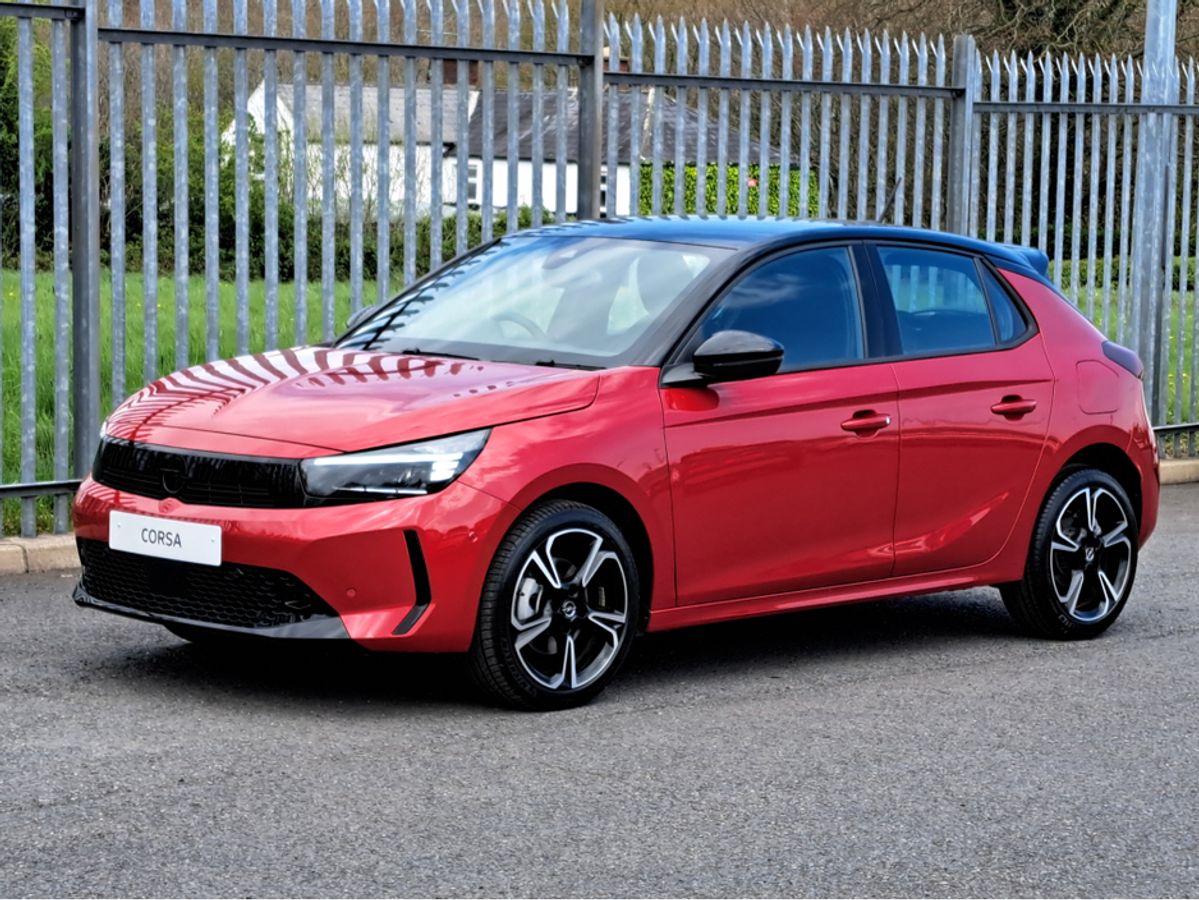 We are pleased to offer for sale this impressive Opel Corsa GS 1.2 Turbo MHEV 100bhp automatic with mild hybrid technology. This significantly reduces fuel consumption and CO2 emissions. No plug in for recharging!!! This car is finished off in this very eye catching combination hot red metallic colour with black roof and side mirrors. GS model with sport interior, Dark headlining, Heated seats and steering wheel, 7'' digital driver information cluster, 10'' colour touchscreen with MirrorLink/ Apple Car Play/ Android Auto, Reversing camera, LED headlamps, 18" alloy wheels, Rain-sensitive windscreen wipers, Automatic headlight control, Front and rear parking distance sensors, Fold away mirrors, Intelligent front camera safety system with speed sign recognition, Cruise control with speed limiter, Lane departure warning with lane assist, USB audio connection and much more.