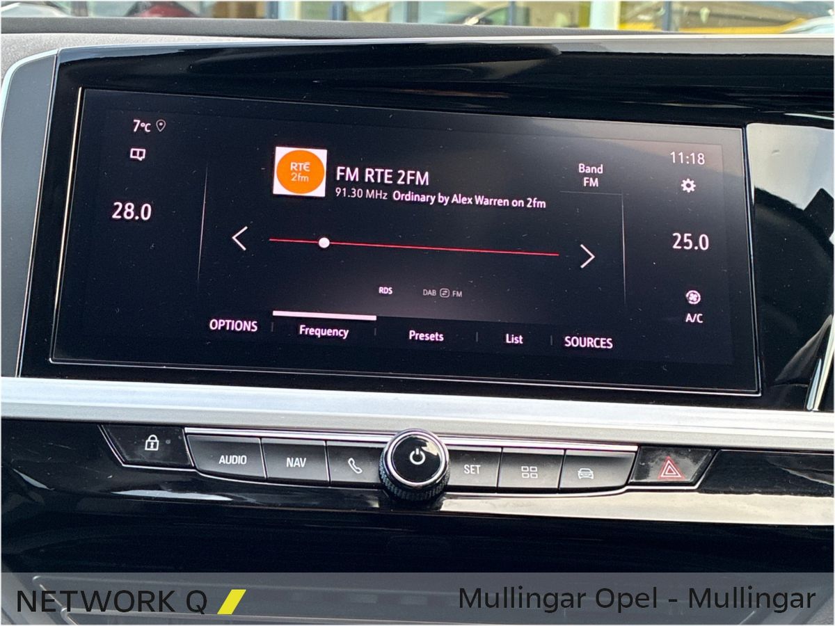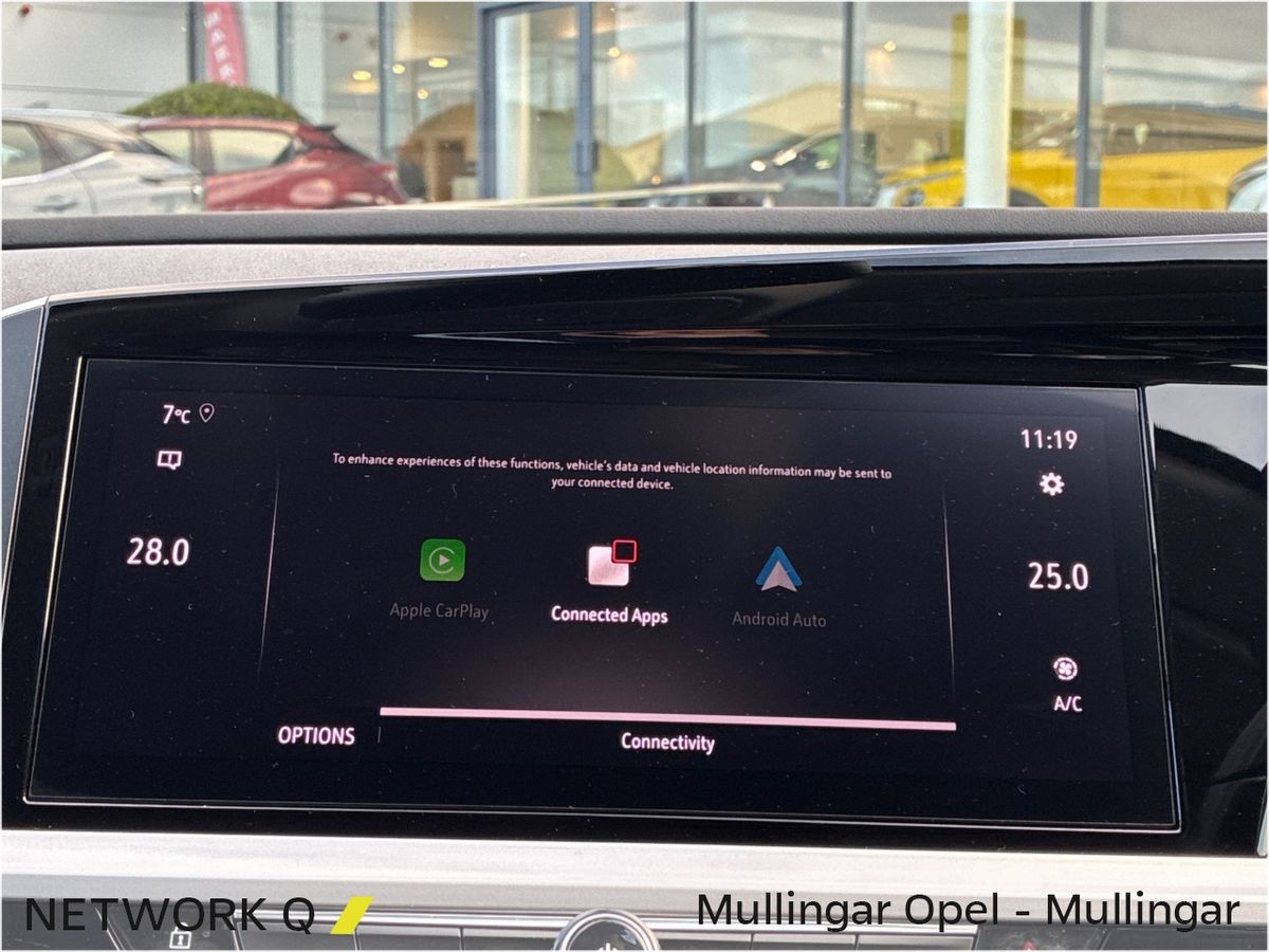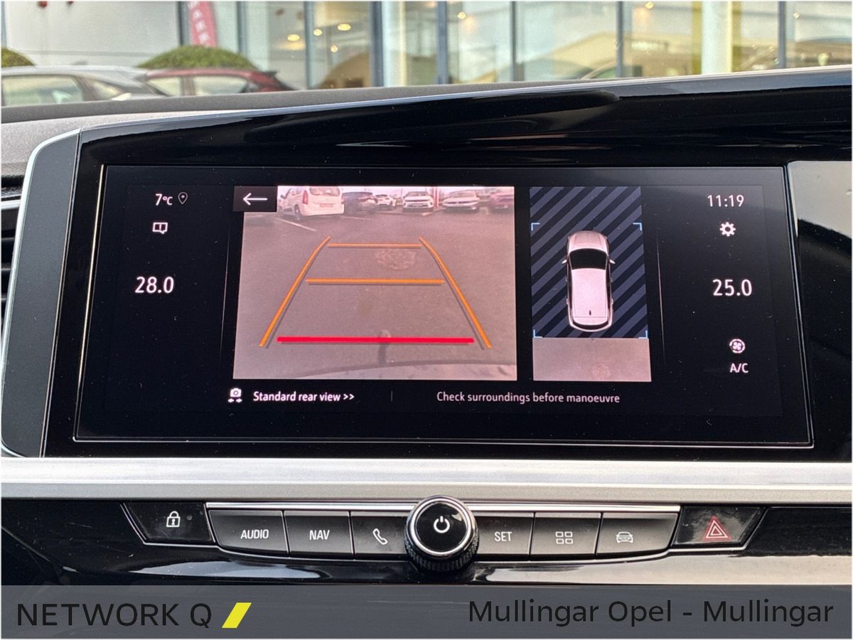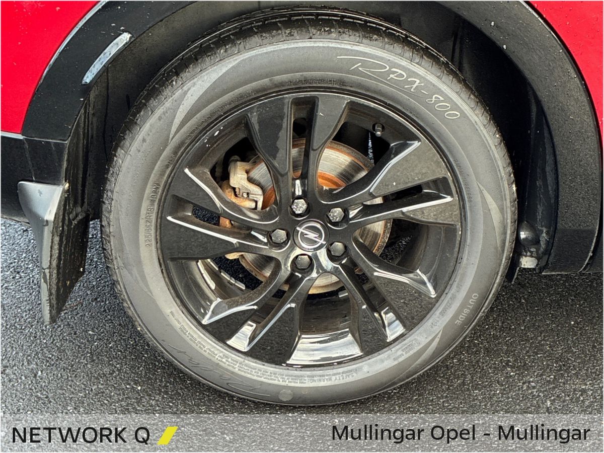 This sporty Automatic Diesel Grandland features Adaptive LED Headlights, Half Leather Upholstery and Contrasting Black Roof, Roof Rails, Mirrors & Wheels.