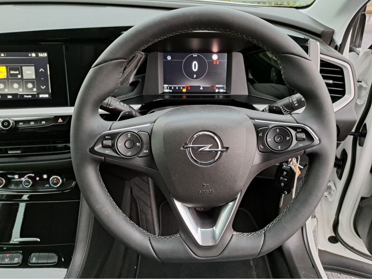 This stylish Opel Grandland 1.5TD 130BHP is finished off in jade white colour and comes with 7" Digital cluster display, LED daytime running lights/Head lights, 17-inch alloy wheels, Rain-sensitive windscreen wipers, Automatic headlight control, Front and rear parking sensors, 7" colour touchscreen with Apple Car Play and Android Auto, Adaptive cruise control, Lane assist.