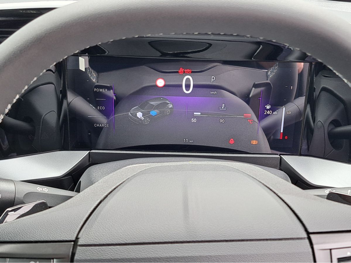 For everyday driving, the petrol engine and the electric motor operate together or separately to optimise energy consumption and performance, particularly in urban areas. The digital information cluster will notify you which power source is being used.