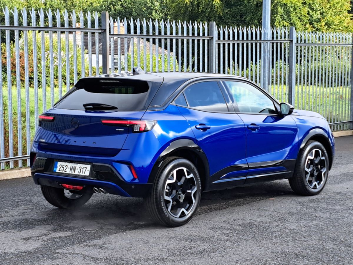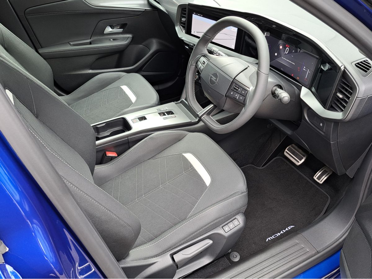 We are pleased to offer for sale, this fully loaded Opel Mokka MHEV 1.2TURBO 136BHP, which is finished off in Kolibri blue metallic body and black roof. GS model with sport black leather/suede interior, Heated front seats with massage on demand, Heated steering wheel, Dark headlining, Multimedia Pro - Satellite Navigation system with higher definition 10" Colour Touchscreen incl. Apple CarPlay and Android Auto, Wireless phone charging, , 180 panoramic rear camera, Parking sensors, Intelli-Lux Matrix headlights with advanced forward lighting and anti-glare beam, 18" alloy wheels, 10" full digital cluster, Adaptive Cruise control, Keyless entry and start, Electric climate control, Automatic headlight control, Rain-sensitive windscreen wipers, Automatic anti-dazzle rear-view mirror, Fold away side mirrors, Side blind spot alert, cruise control and much more!!!