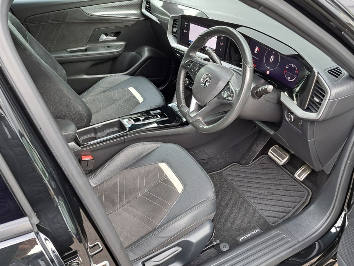 We are pleased to offer for sale this impressive (231) Mokka 1.2Turbo 130bhp which is finished off in diamond black metallic. Ultimate model with leather/suede interior, Heated front seats and steering wheel, Dark headlining, 12'' digital driver information cluster, 12'' colour touchscreen with Apple Car Play/ Android Auto, Reversing camera, Adaptive IntelliLux LED headlamps, LED fog lights, 18" alloy wheels, Dark tinted rear windows, Keyless entry and start, Rain-sensitive windscreen wipers, Automatic headlight control, Front and rear parking distance sensors, Fold away mirrors, Intelligent front camera safety system with speed sign recognition, Adaptive cruise control with speed limiter, Lane departure warning with lane assist, USB audio connection and much more.